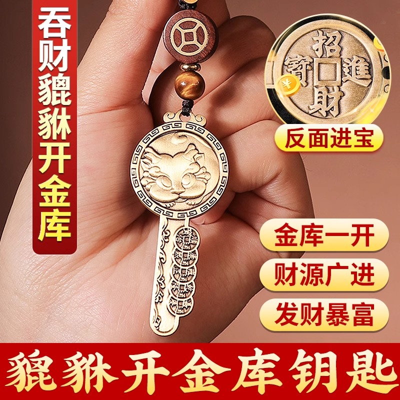2025招财貔貅富甲一方开财库钥匙扣挂件刻字防丢车钥匙吊坠饰品
