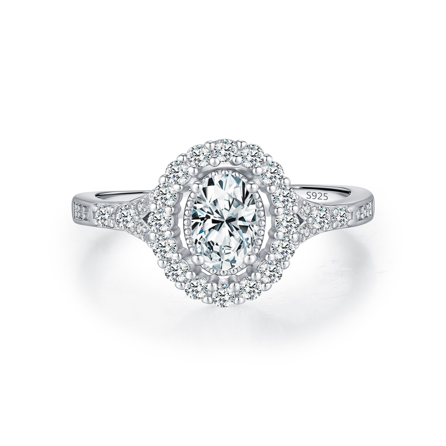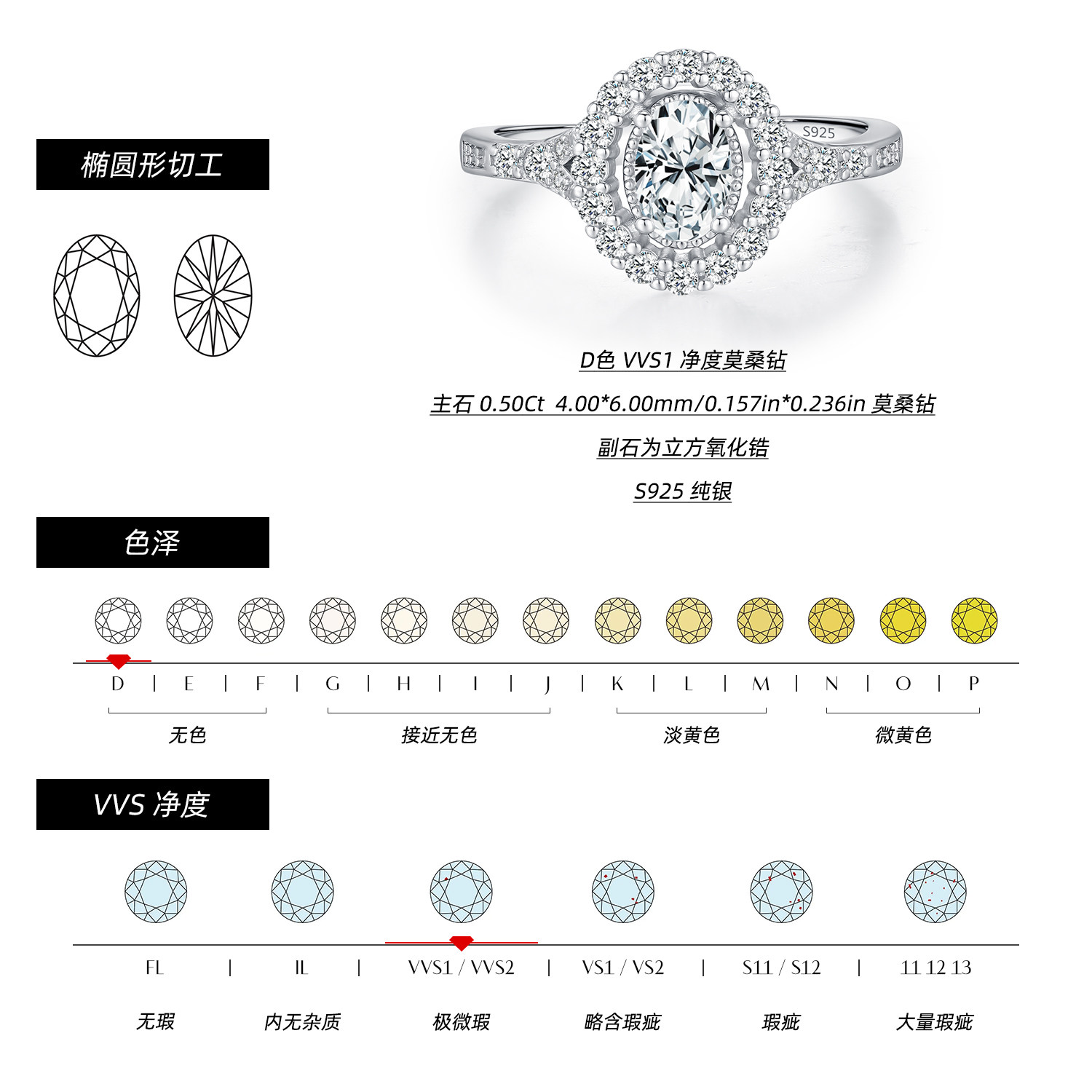 MODIAN摩典50分莫桑钻戒指女S925纯银轻奢高级蛋面闪钻求婚钻戒女