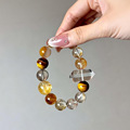 天然茶晶银曜石红玛瑙水晶手串大点位串珠手饰女红色新年手链礼物