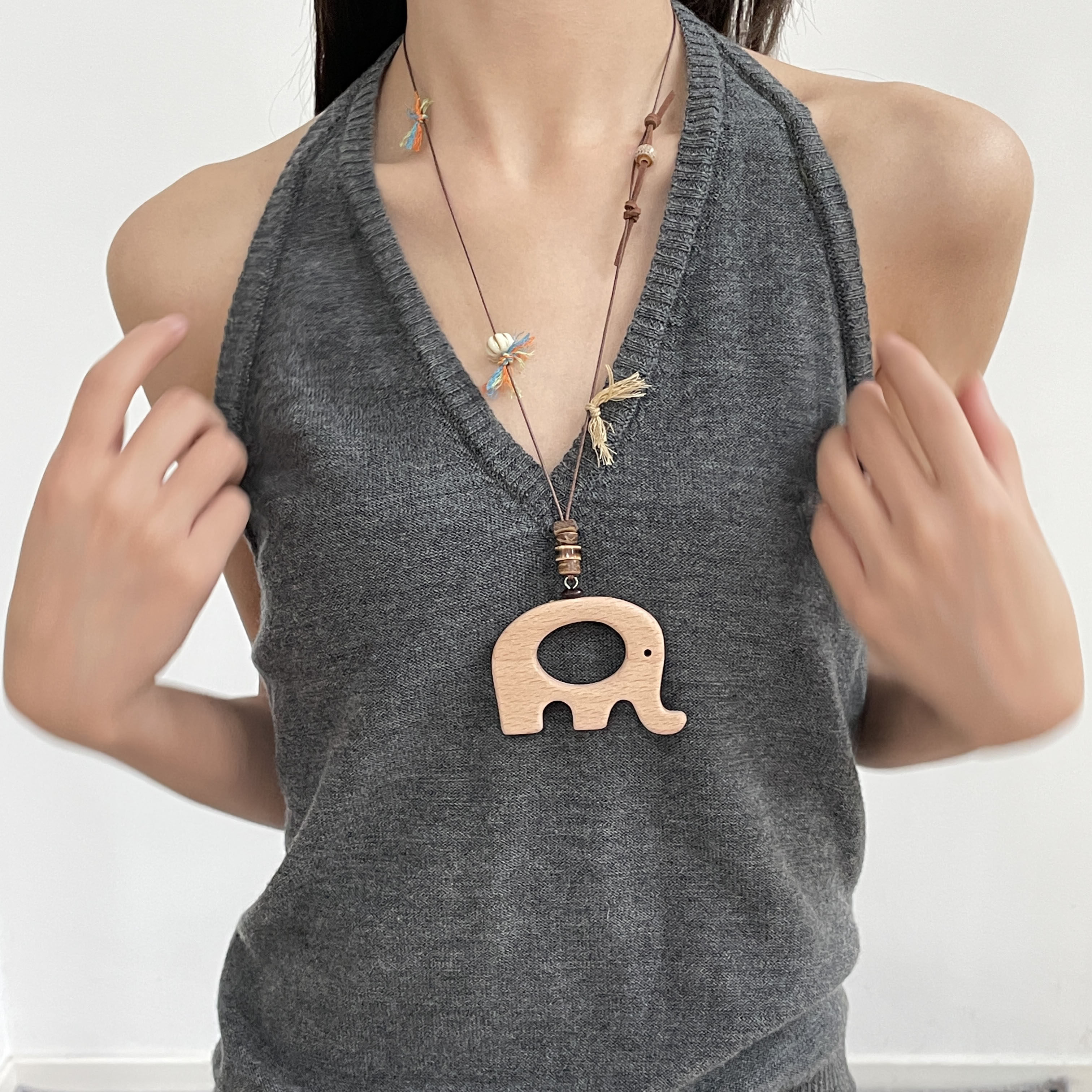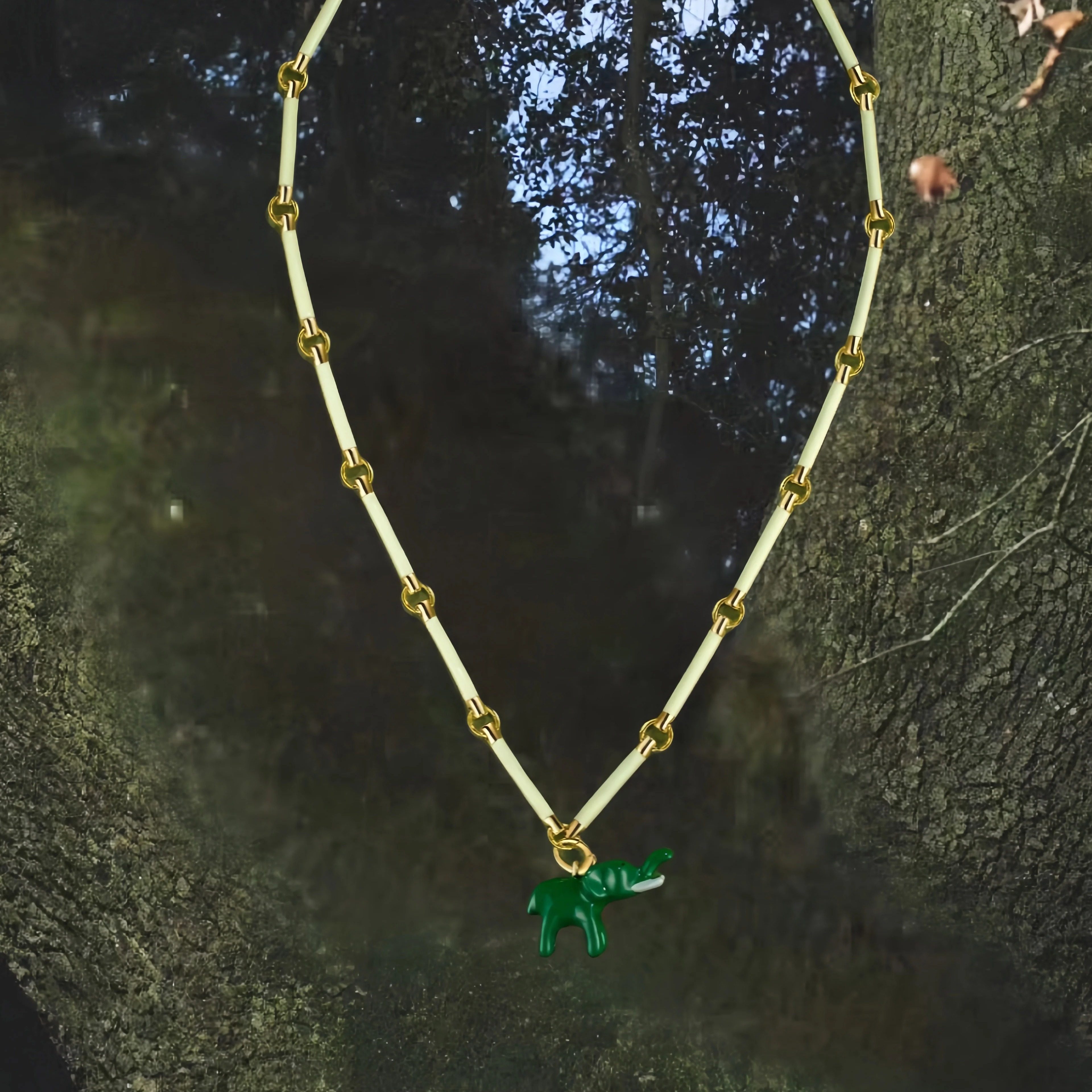 心象事成节节高绿色小象项链珐琅可拆卸高级感轻奢度假风锁骨链