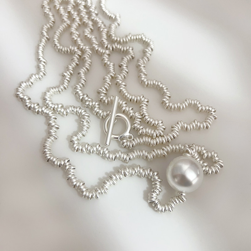金属冷淡风环环相扣珍珠吊坠项链女时尚个性气质百搭叠戴毛衣链