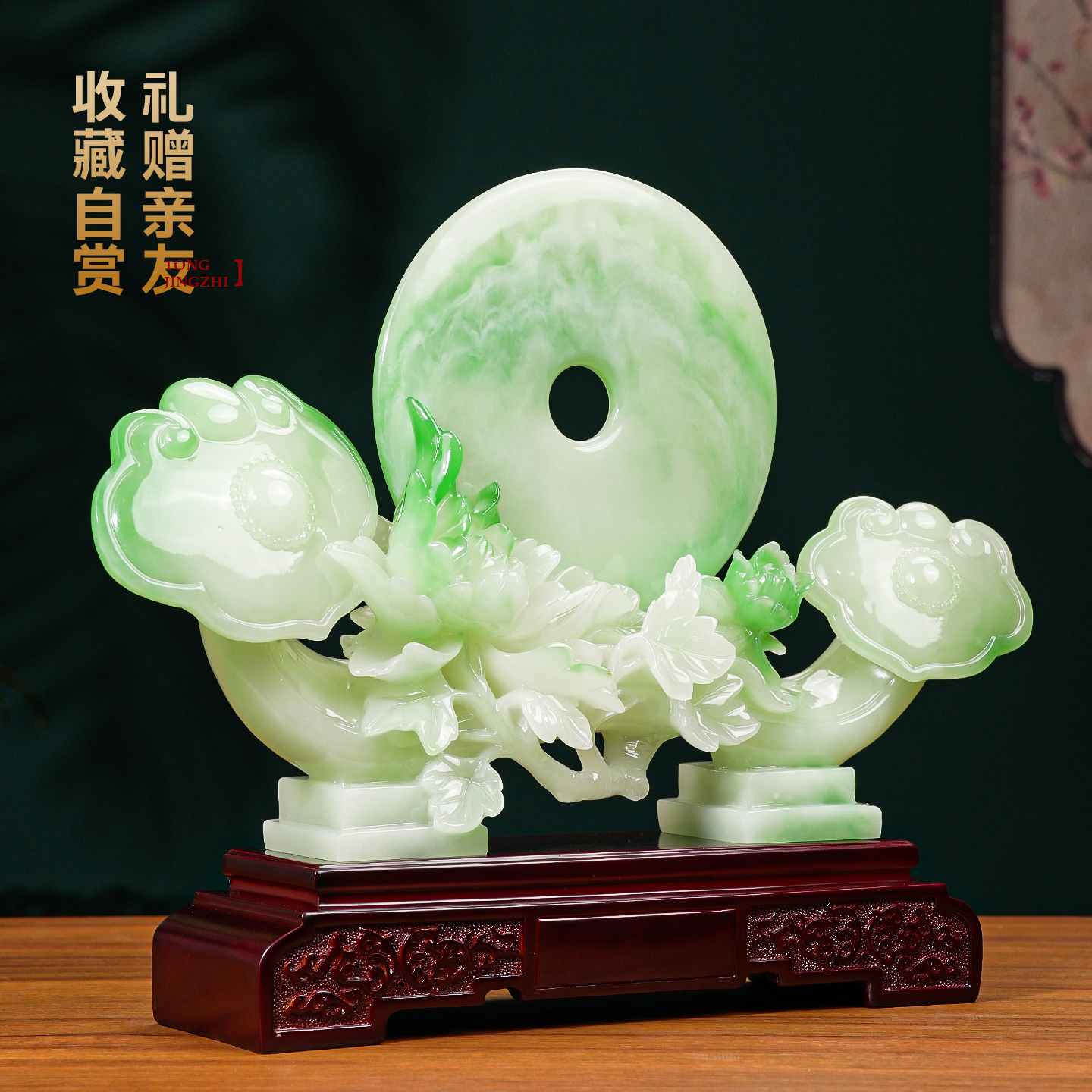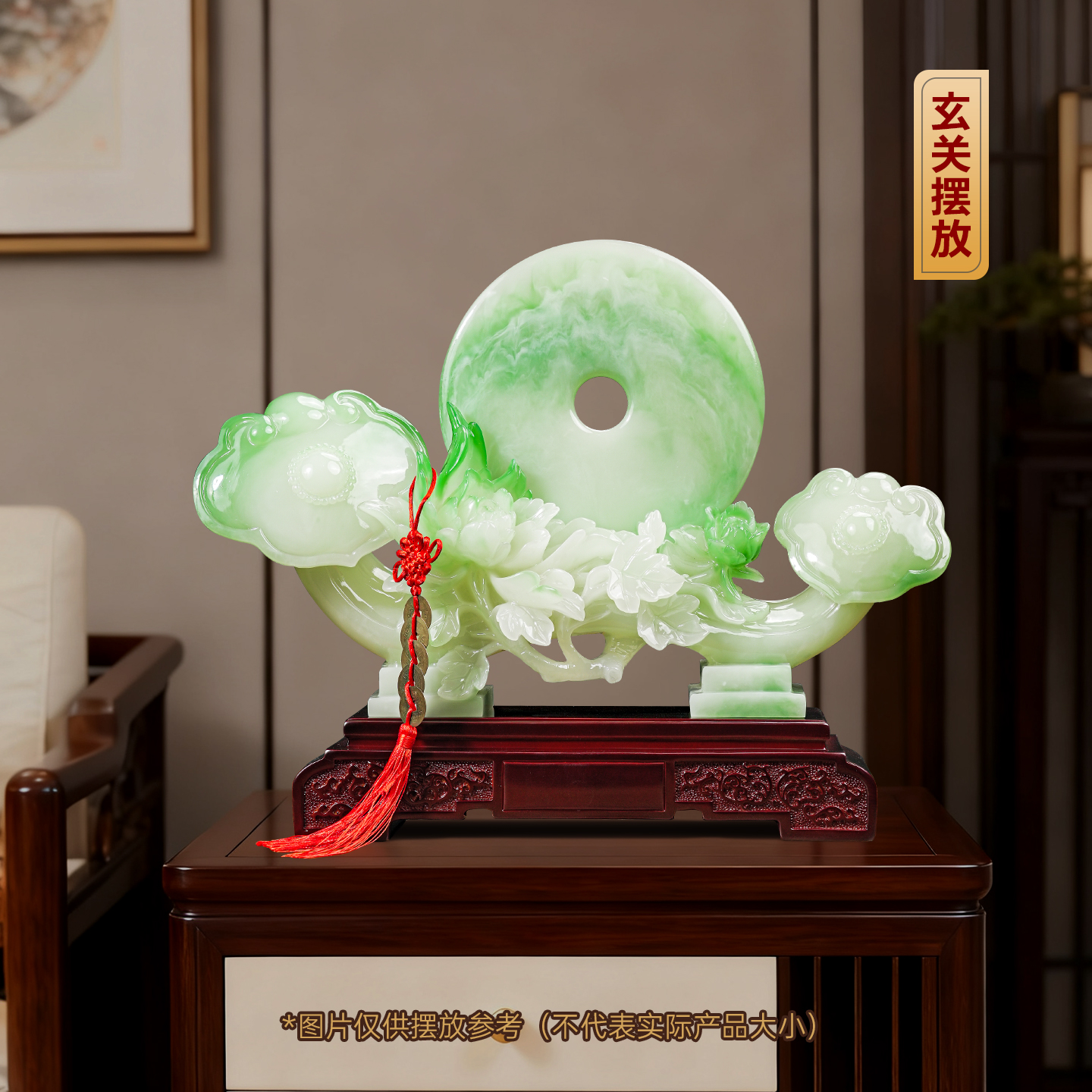 平安如意牡丹花摆件平安扣招财合成玉客厅玄关酒柜装饰品乔迁礼物