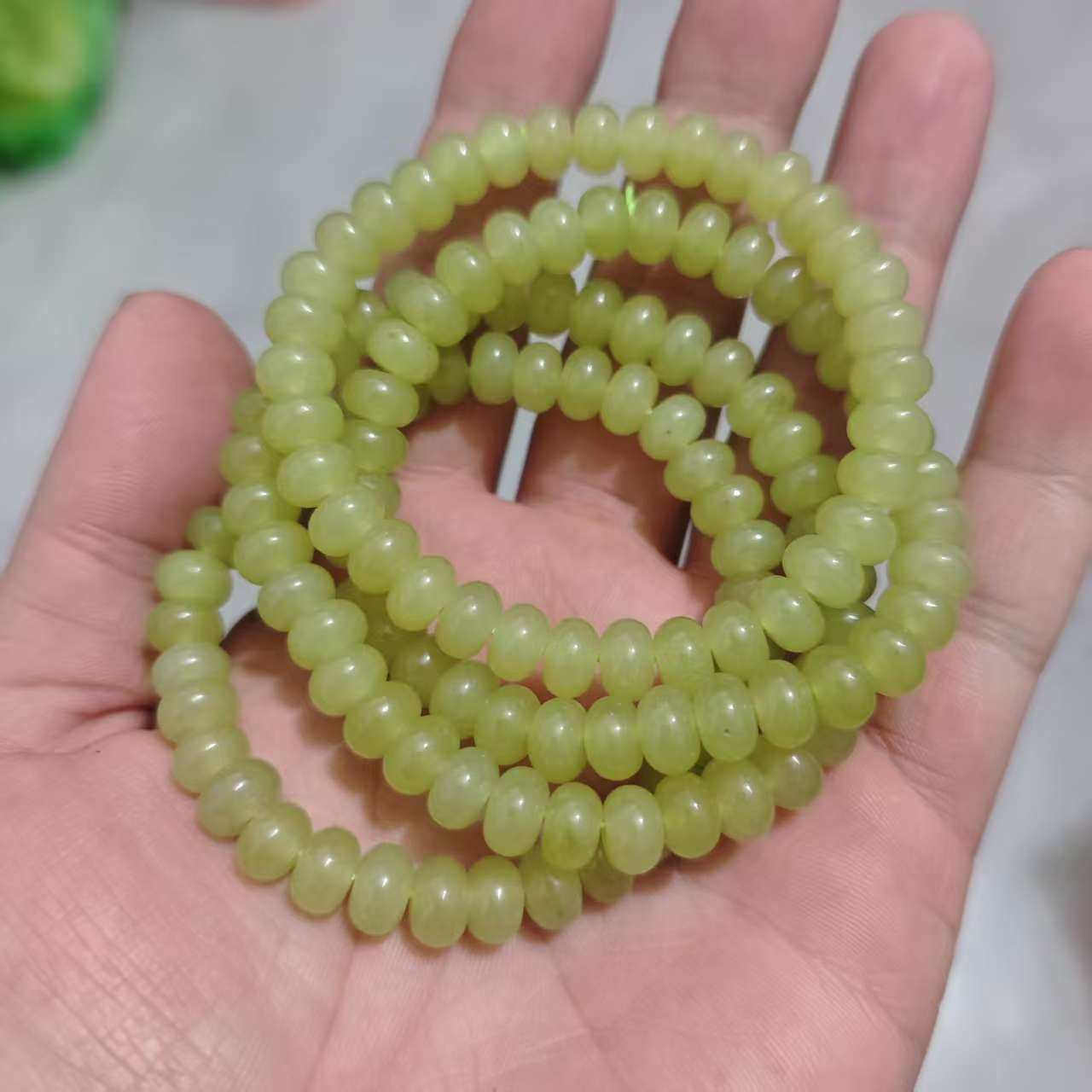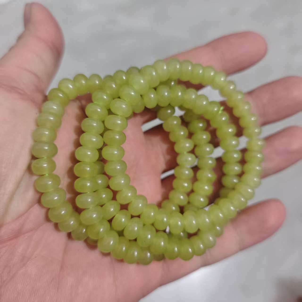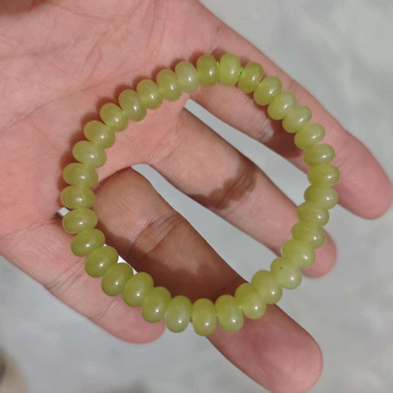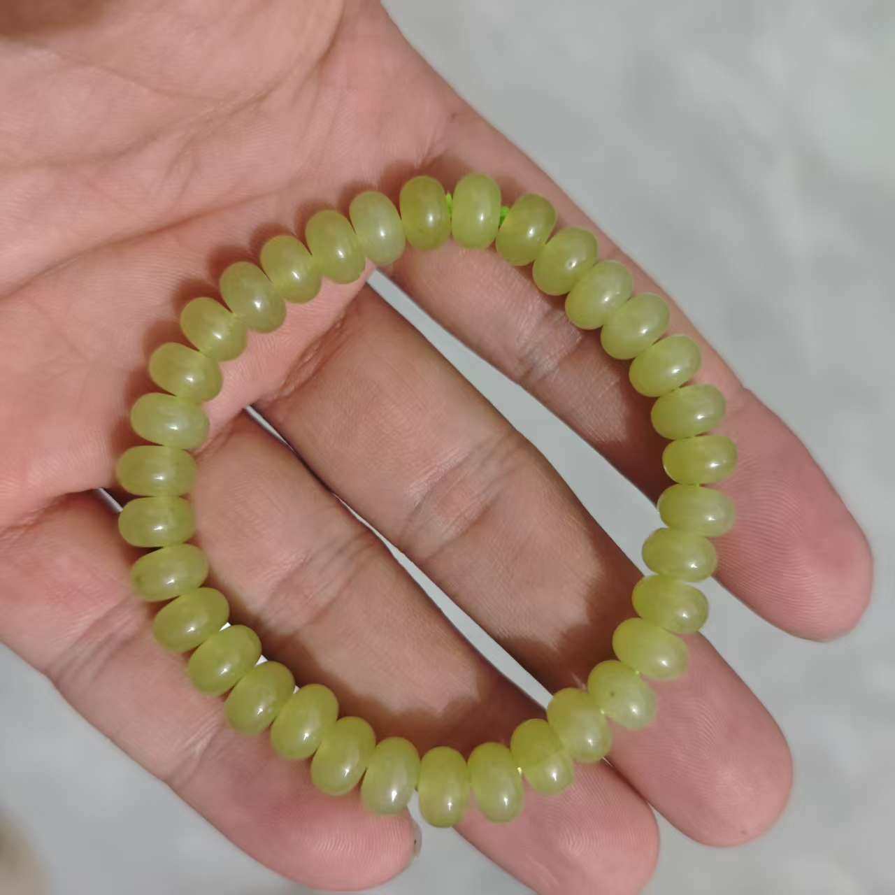 天然冰晴青海水黄玉A货算盘珠手串8mm黄绿色昆仑一响万两手链女款