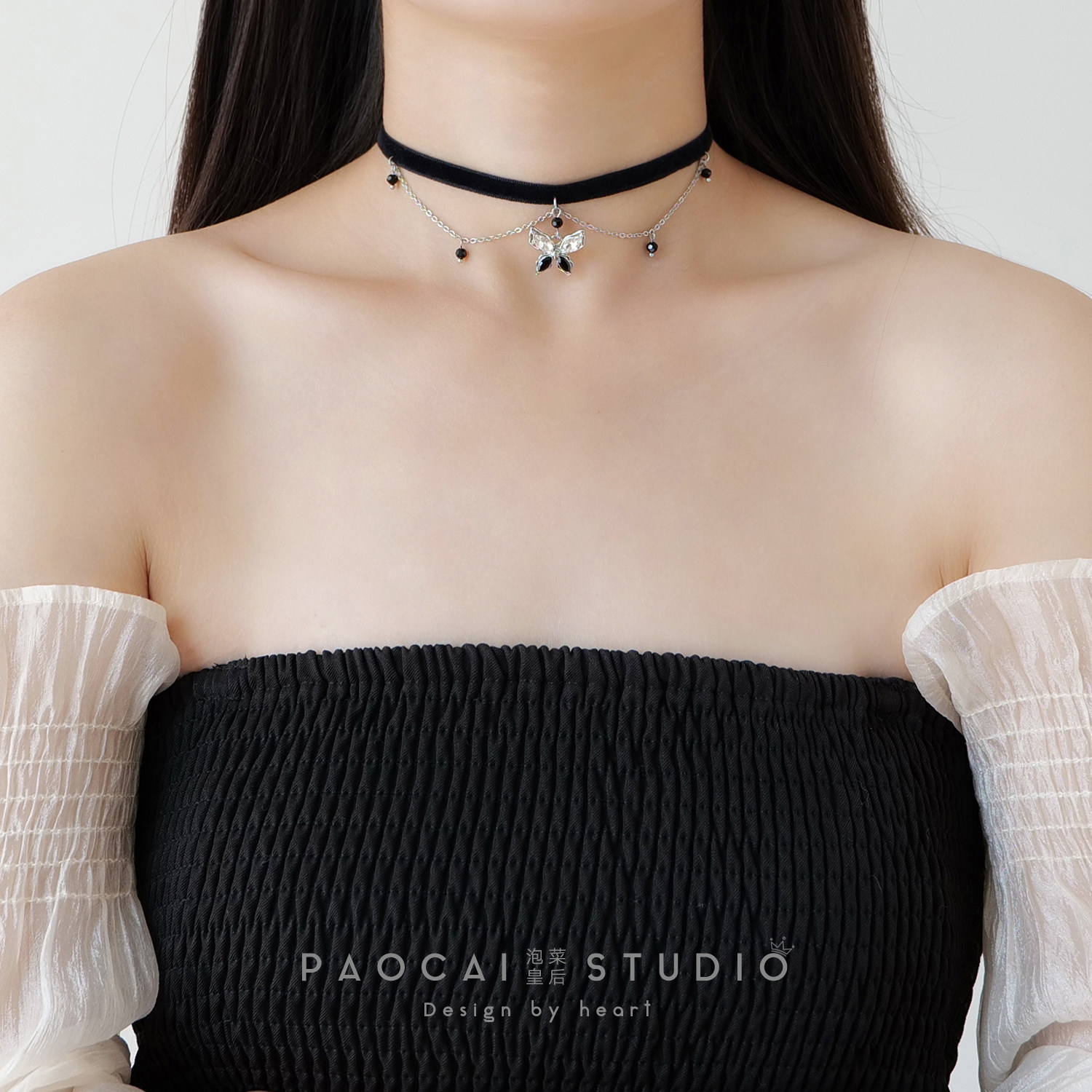 暗之蝴蝶 原创丝绒锁骨链choker甜酷辣妹项链颈链小众设计感项圈