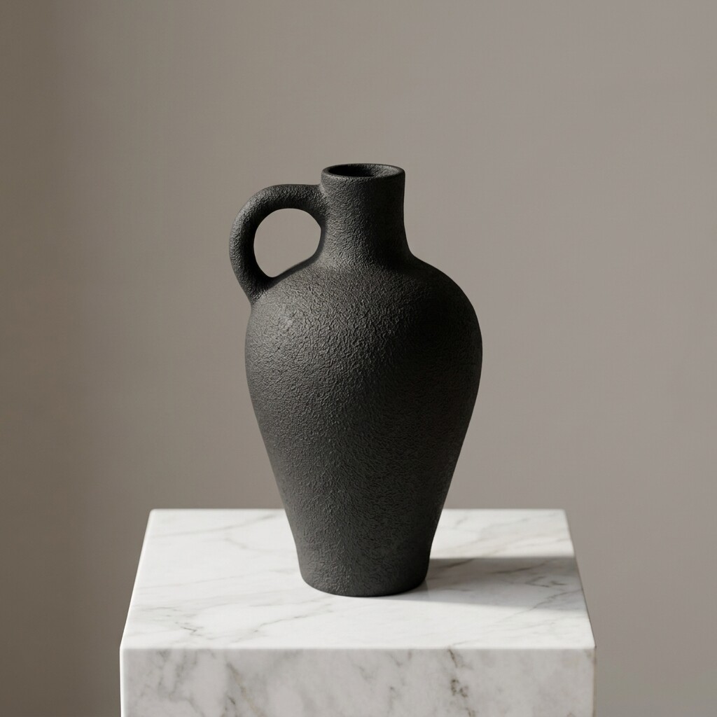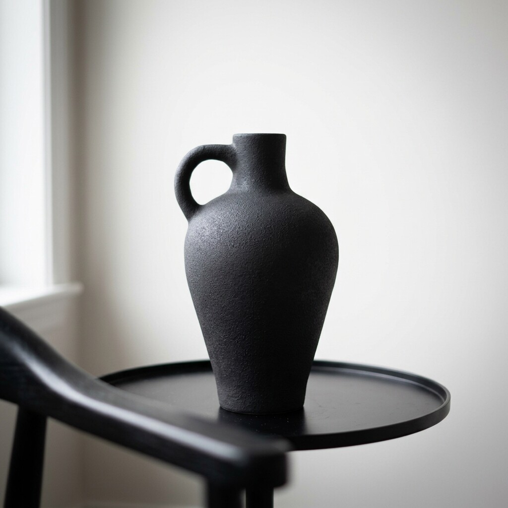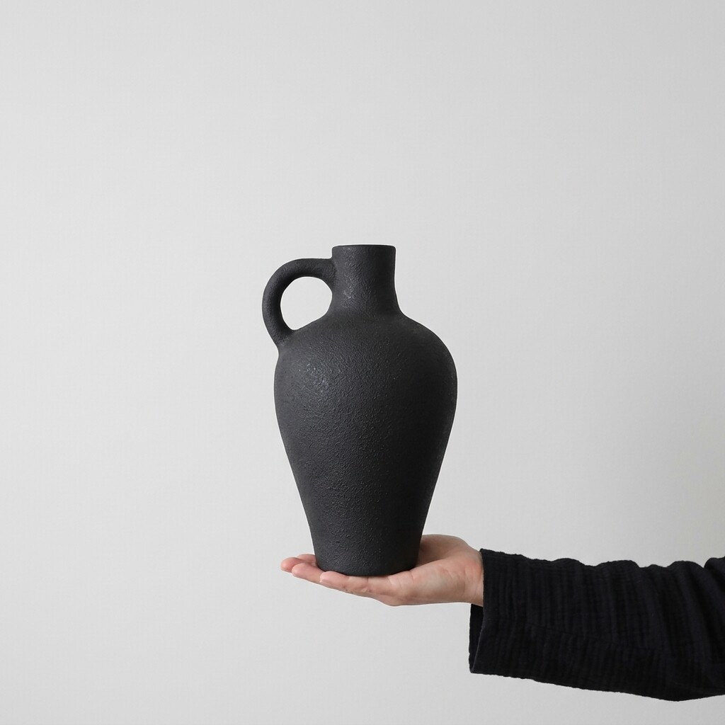 黑色磨砂陶瓷花瓶摆件客厅玄关家居装饰品创意简约