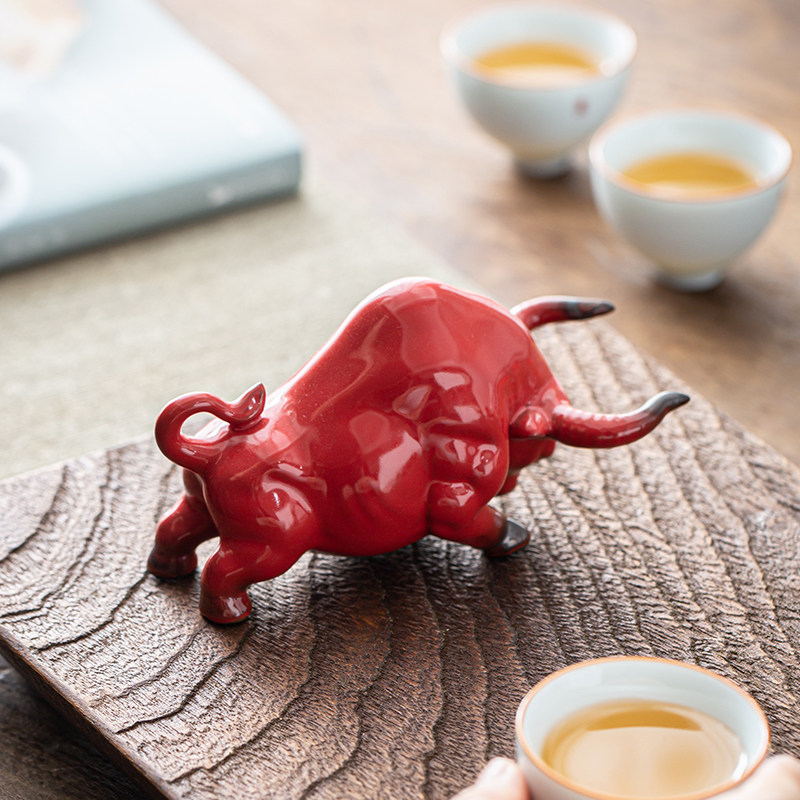创意陶瓷红色牛摆件家居客厅招财装饰品吉祥物生肖牛年礼品摆设