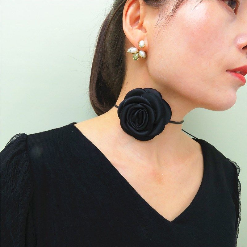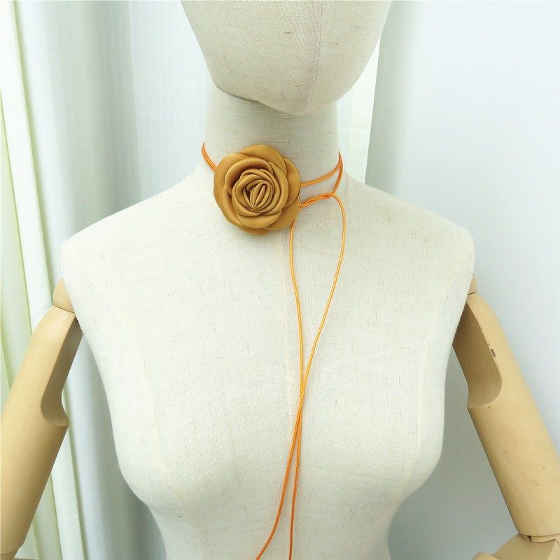 红色颈花玫瑰绑带颈链项圈脖颈花朵女款复古夏季少女颈锁骨链配饰