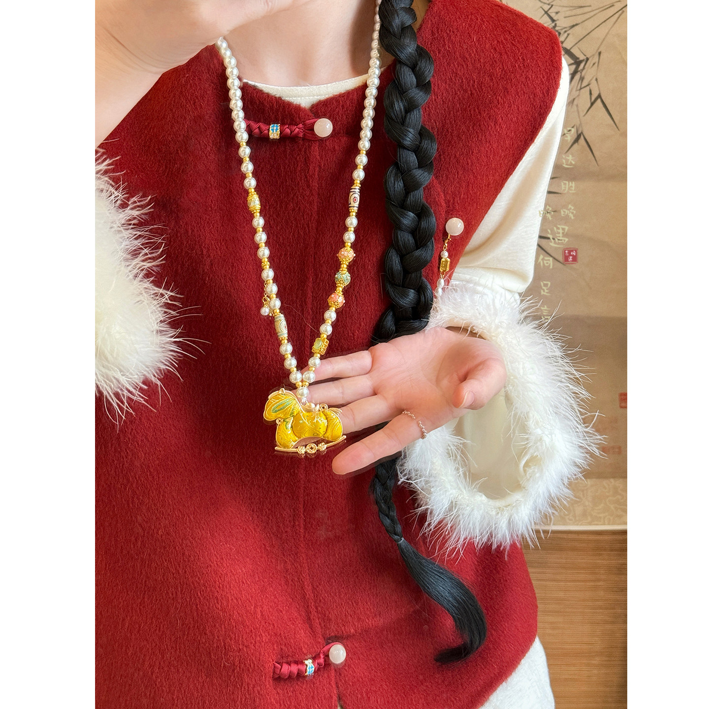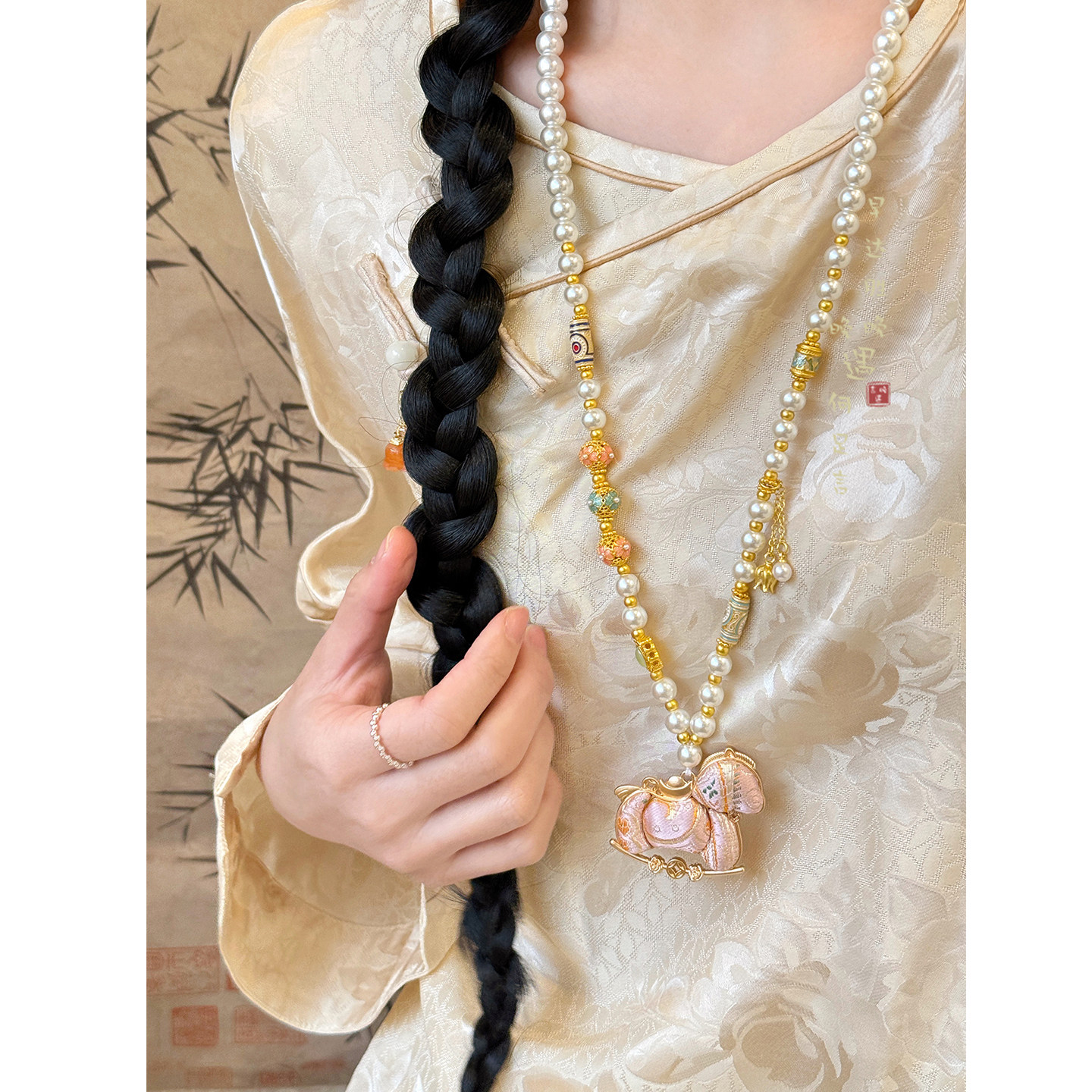 「福你上马」国风宋锦小马串珠项链女新中式本命年毛衣链马年配饰