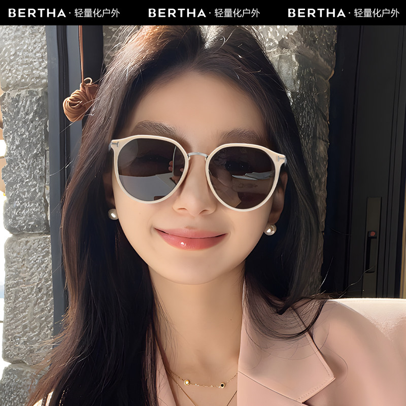 BERTHA偏光太阳镜2026新款白框墨镜女高级感开车防晒紫外线UV400