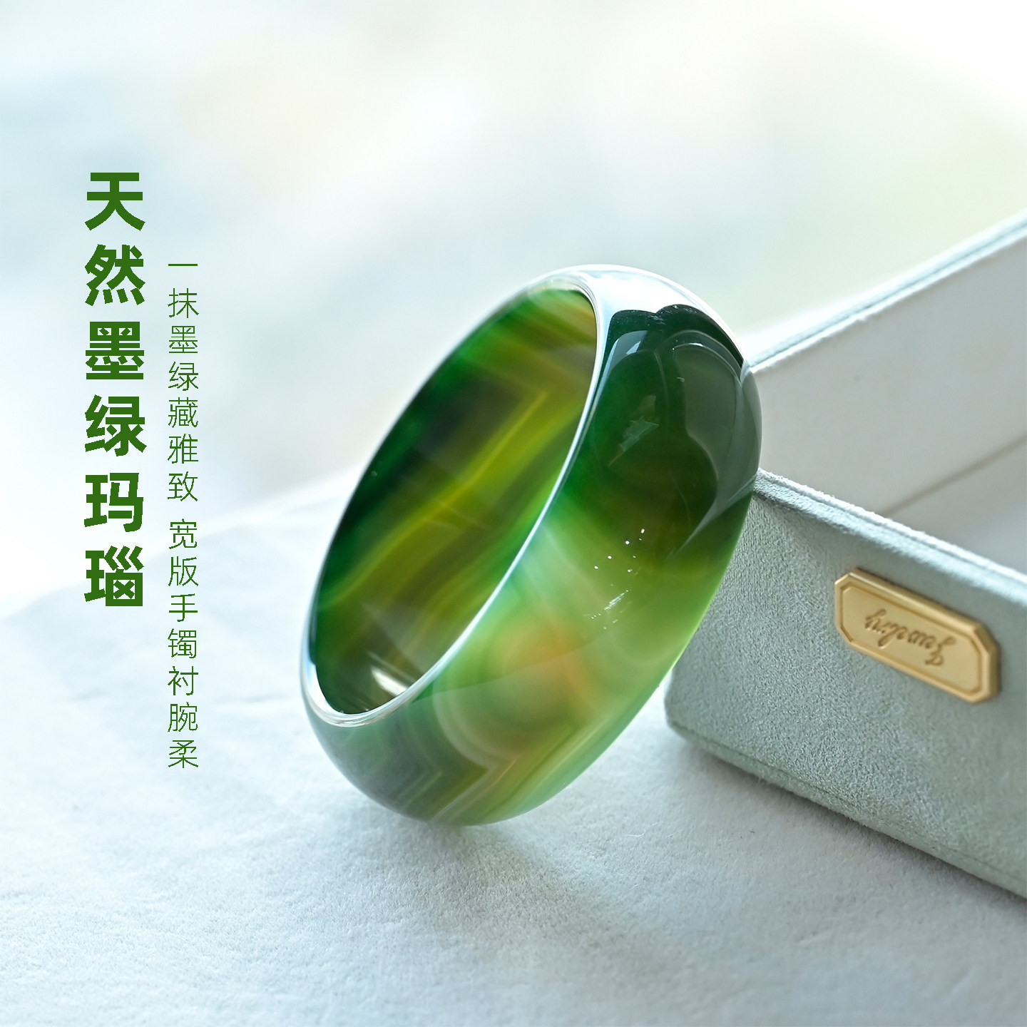 绿玛瑙手镯墨绿色宽版天然玉镯大号复古风玉石送妈妈送婆婆礼物女