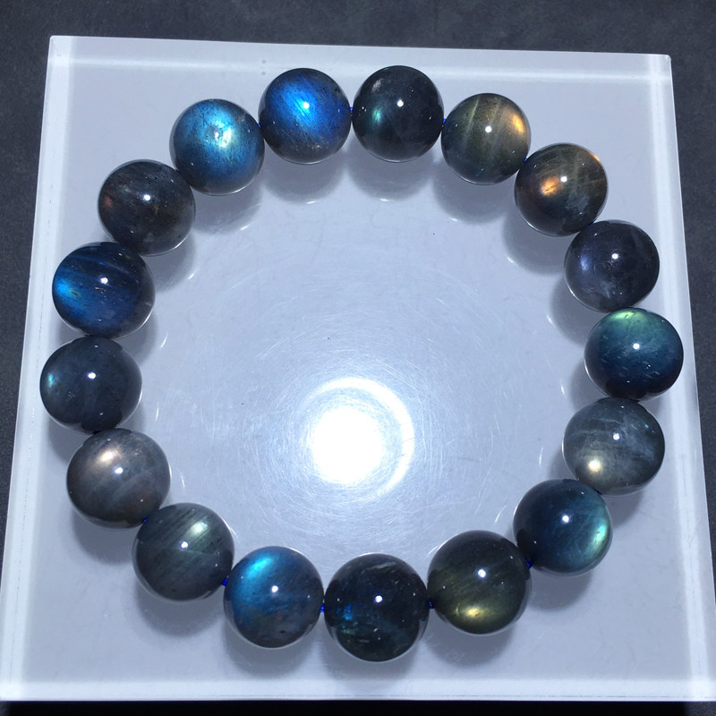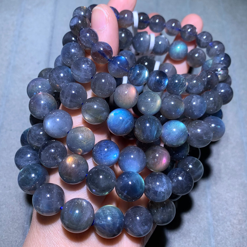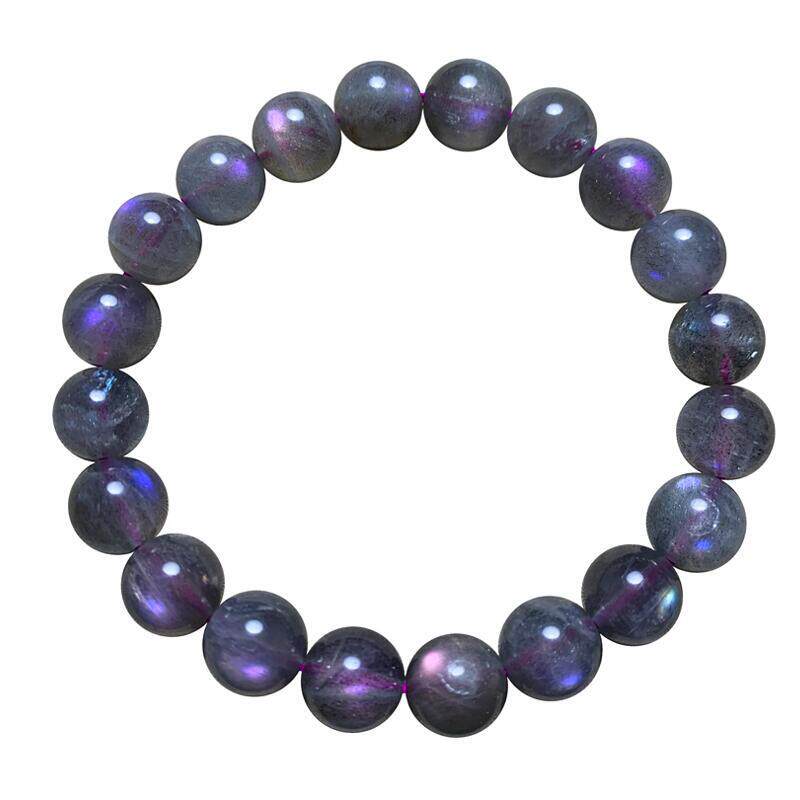 天然紫彩拉长石单圈手串蓝光紫光灰月光石手链水晶饰品情侣款配饰