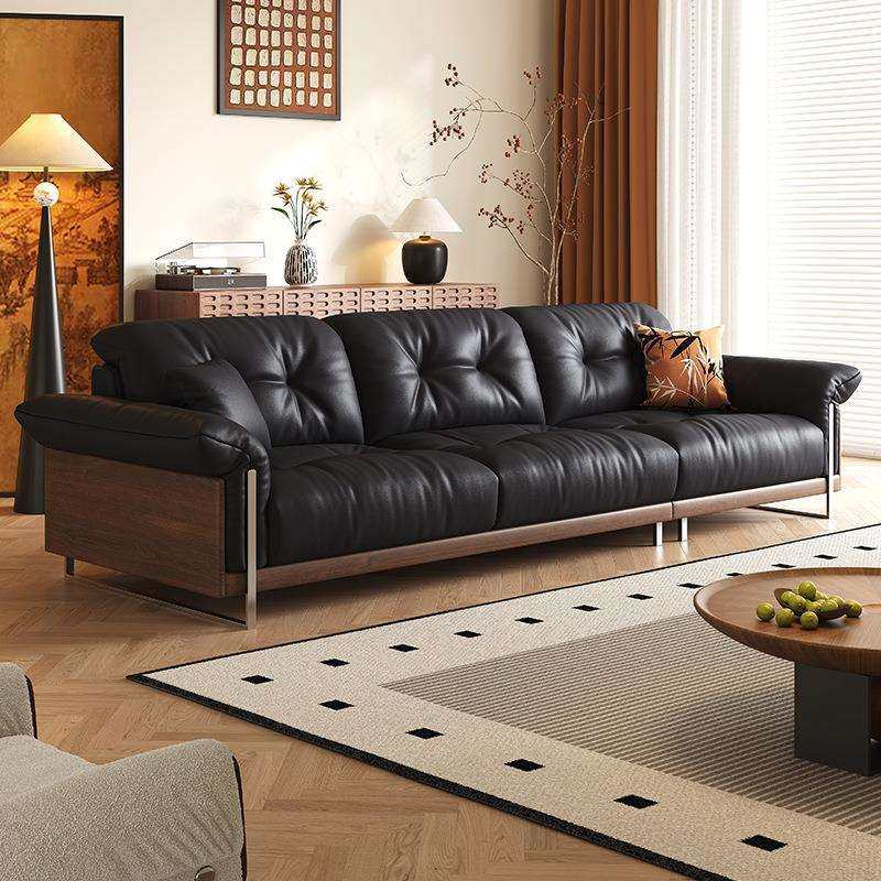 艾沃适中古风客厅沙发直排2025新款高端横厅大户型客厅真皮沙发