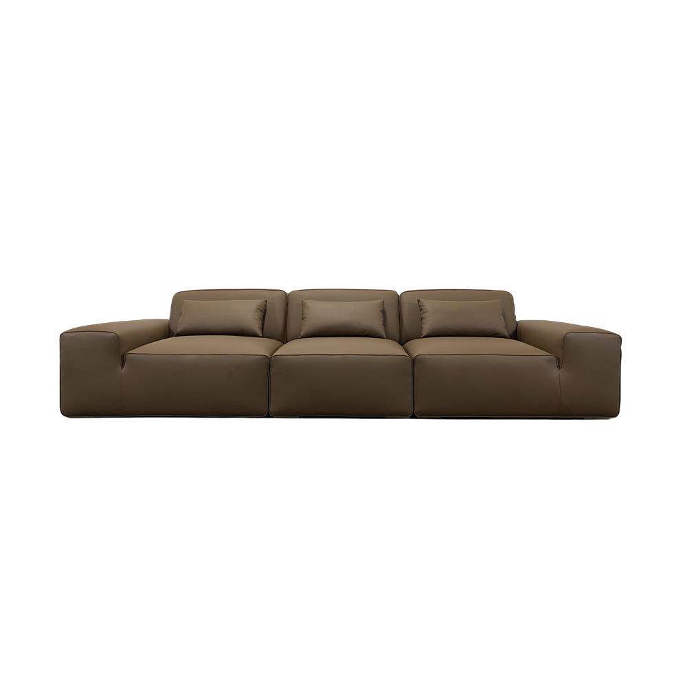 现代简约夏图真皮沙发大黑牛豆腐块意式极简客厅直排四人位皮沙发