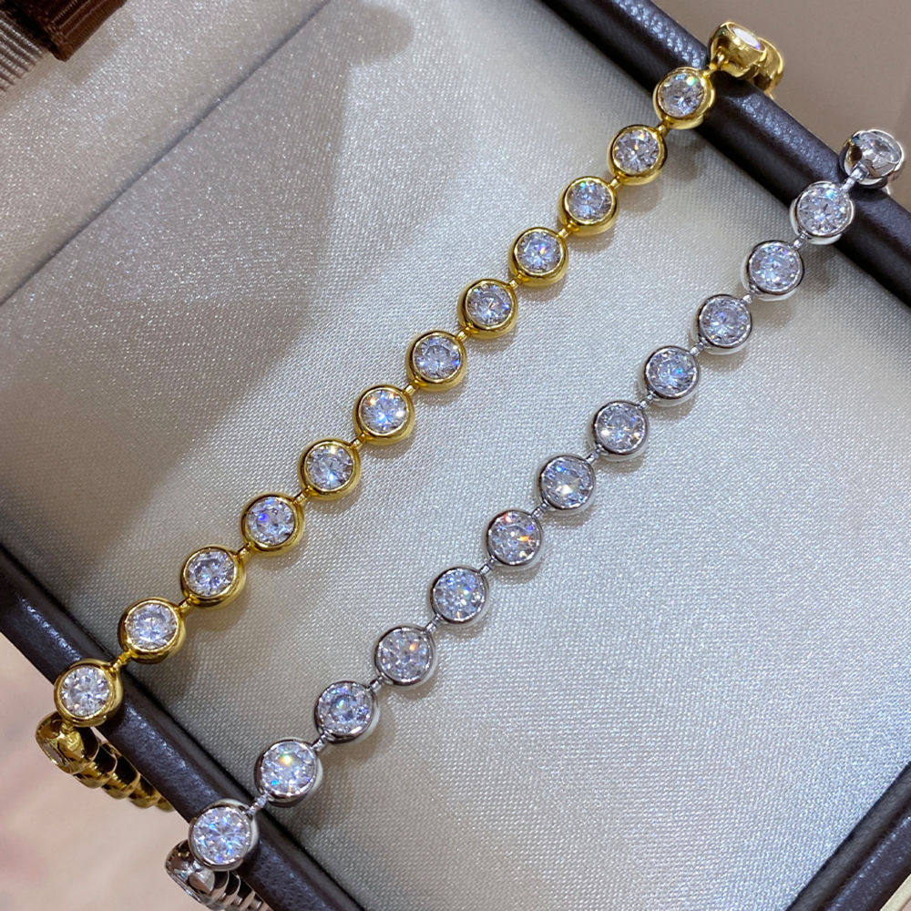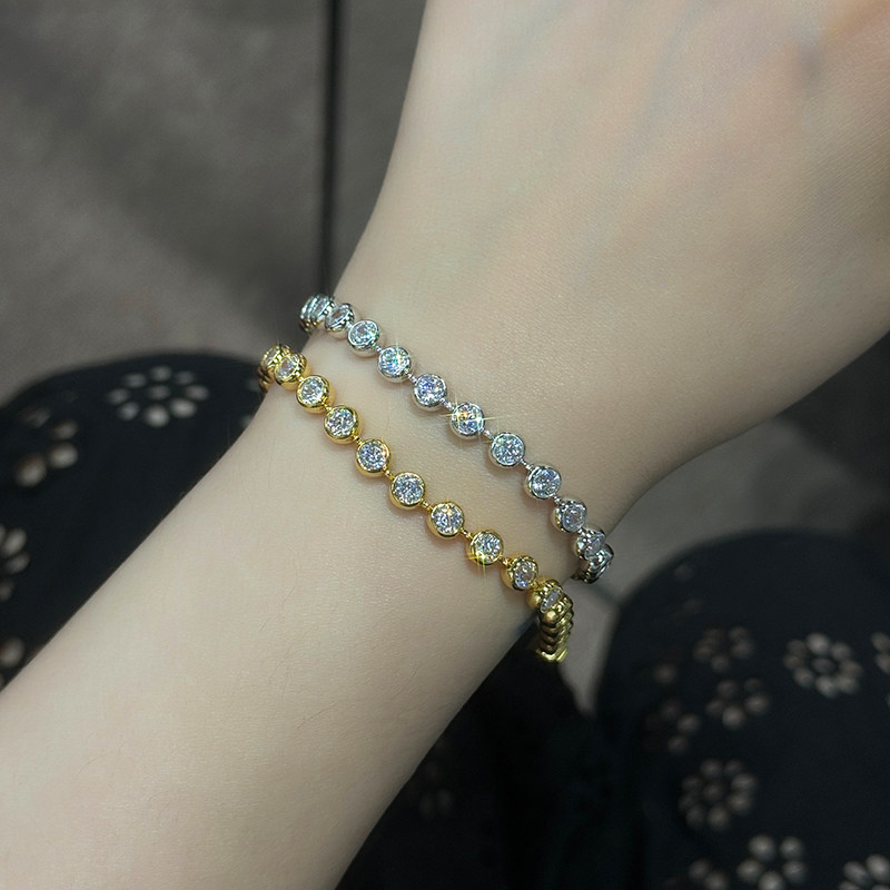 高级感老钱风超闪20分圆钻气泡钻石手链925银镀18k金排钻满钻叠戴