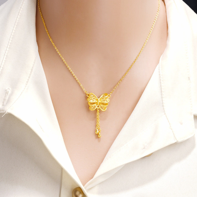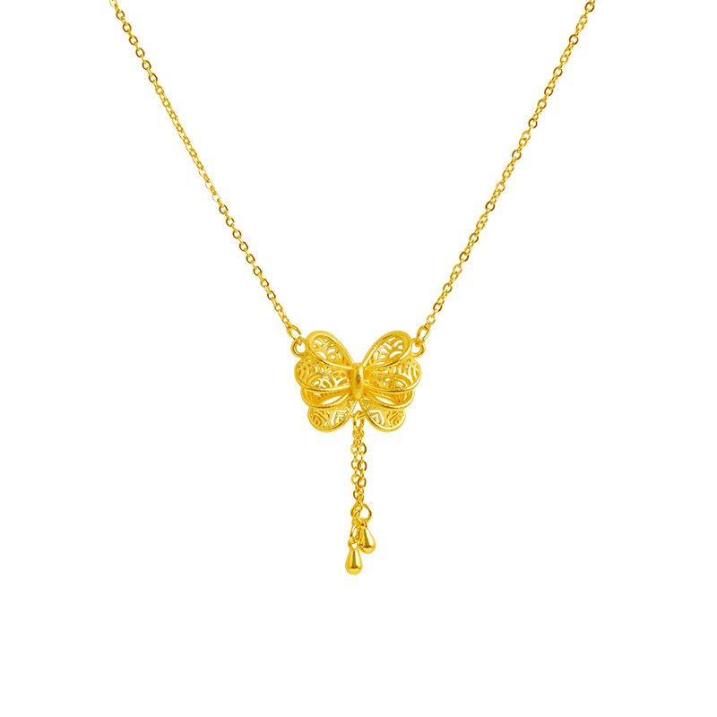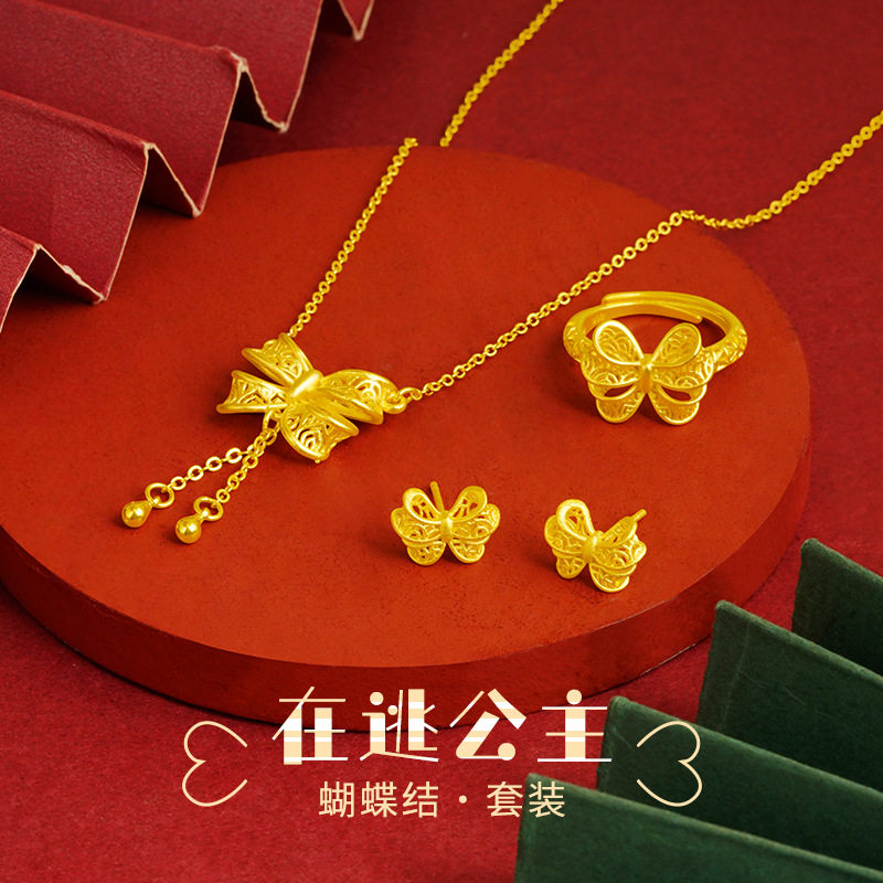 沙金逃公主蝴蝶结镂空套装项链花朵时尚镀金黄金色吊坠首饰品时尚