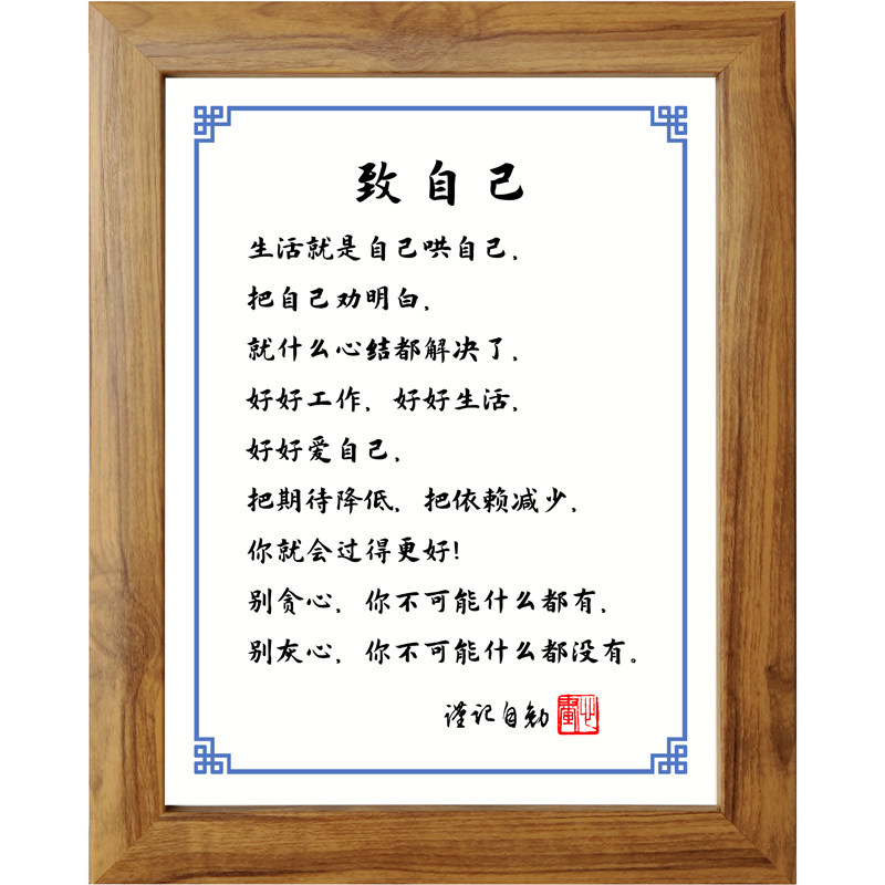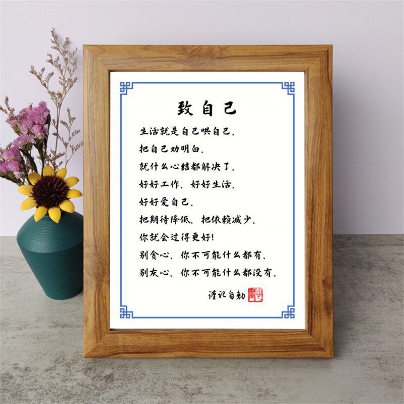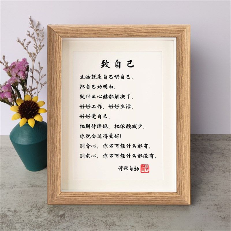 致自己字画好好爱自己书法励志摆件书桌面实木相框摆台挂画座右铭