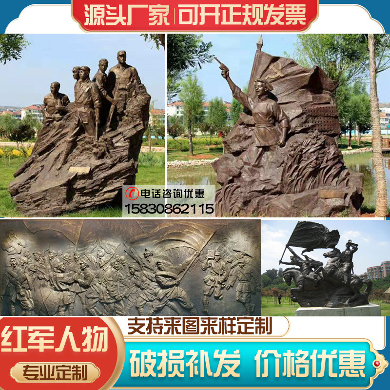 玻璃钢人物雕塑八路军定制大型红色文化铸铜雕像艺术品部队军人
