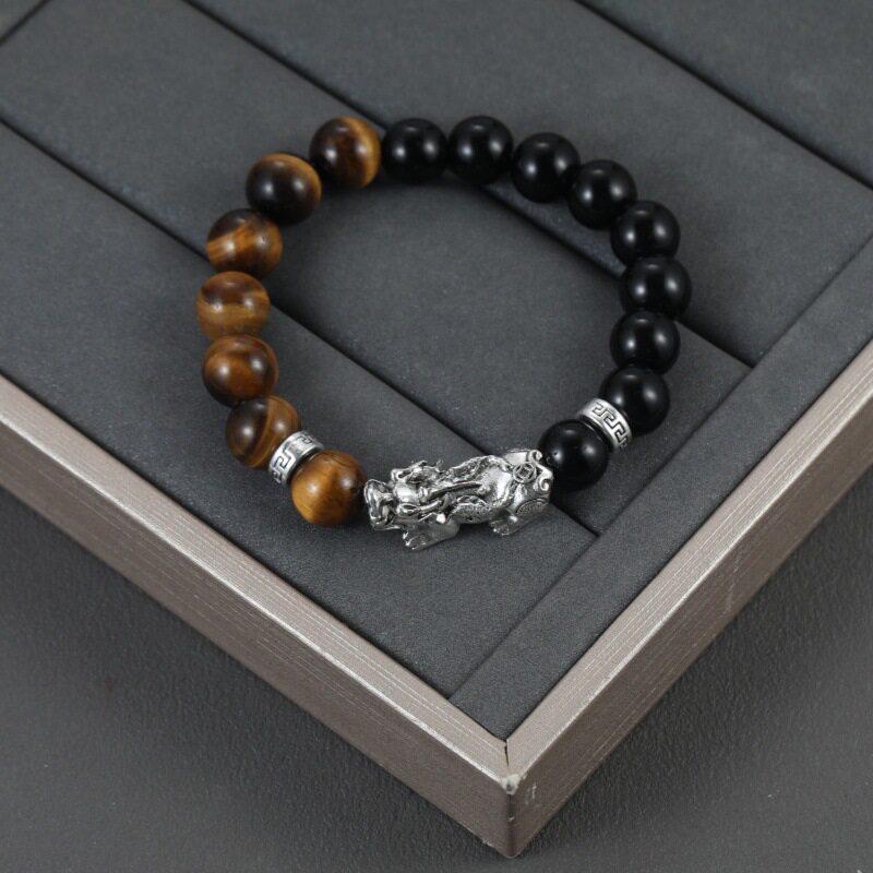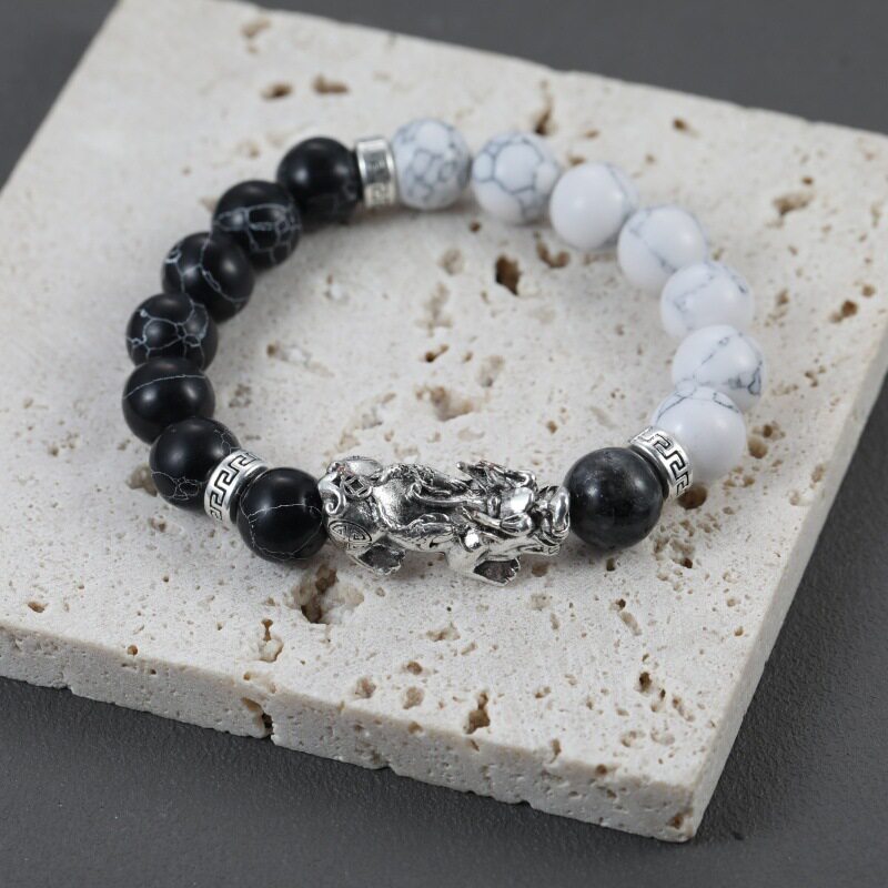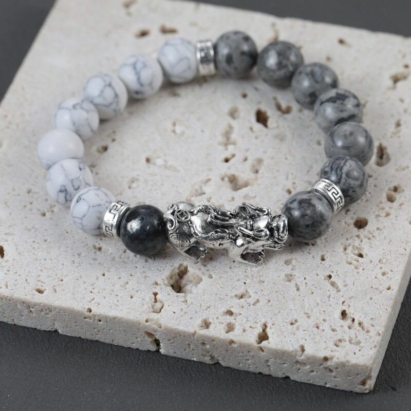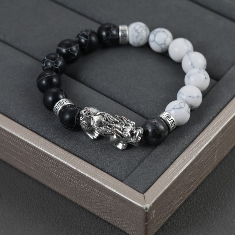 貔貅手链男款男潮本命年男生手绳复古男士黑白色石头手串送男友