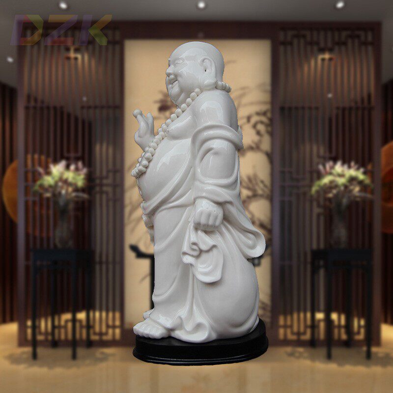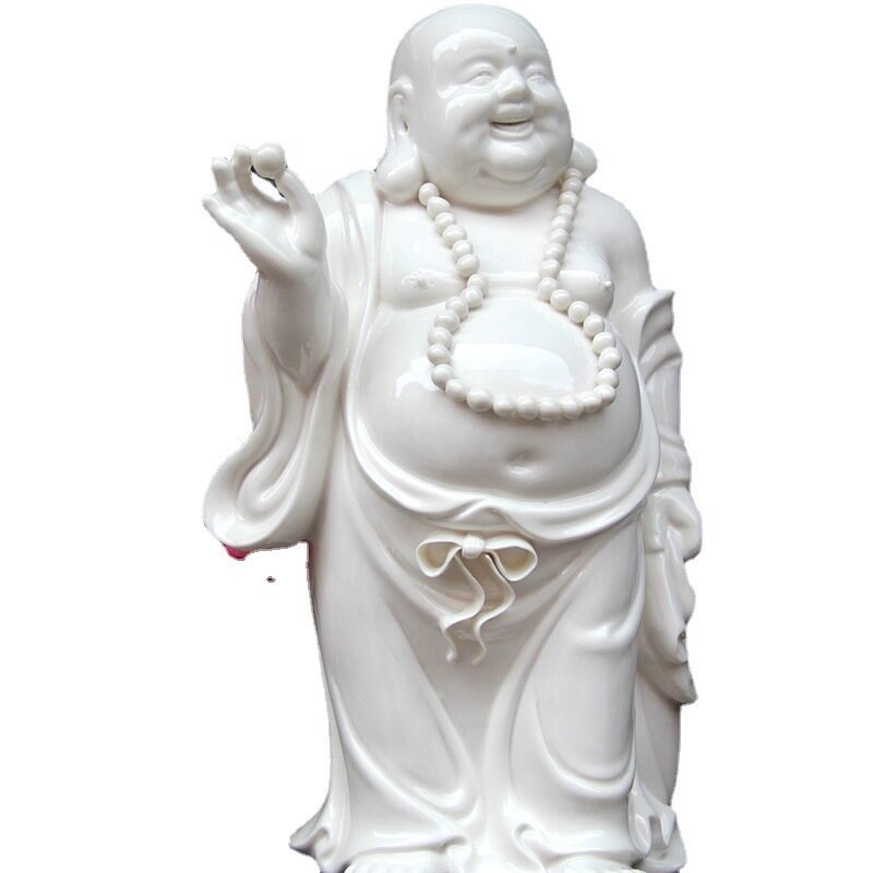 白色弥勒佛陶瓷摆件锦盒包装工艺品家具装饰客厅摆设乔迁礼禅意