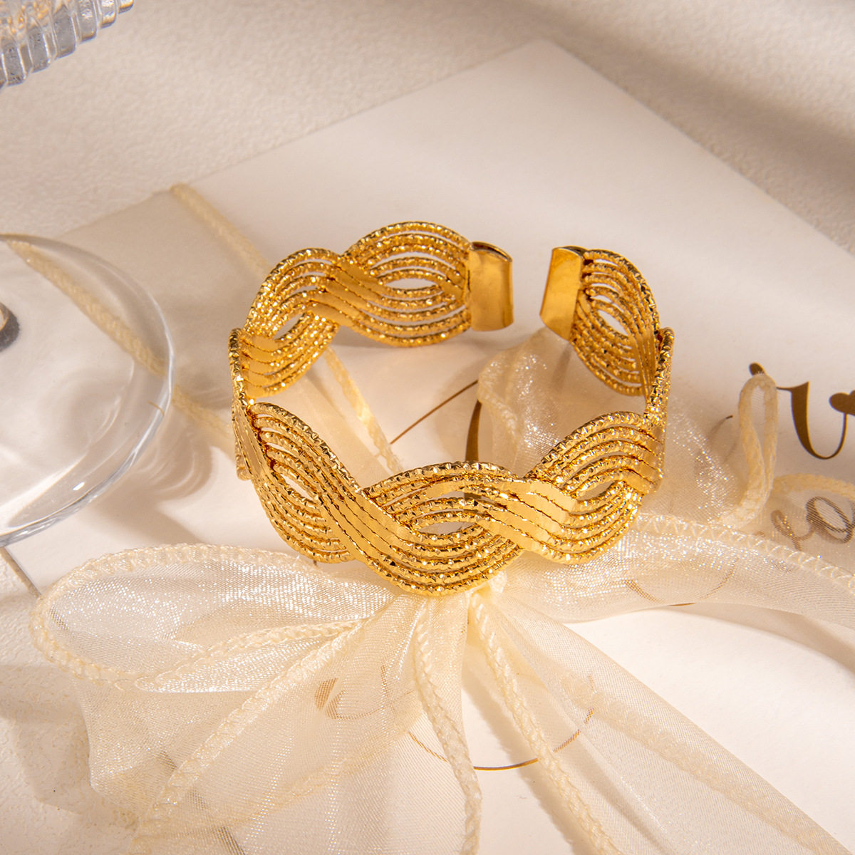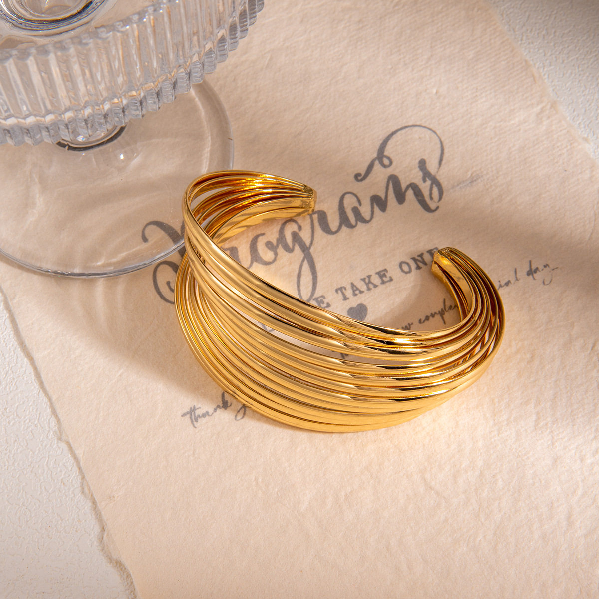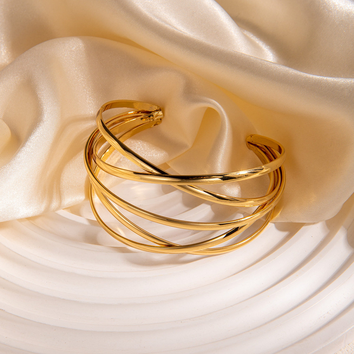 欧美交叉多层开口缠绕金属线手镯 重工复古宫廷风个性夸张手饰女