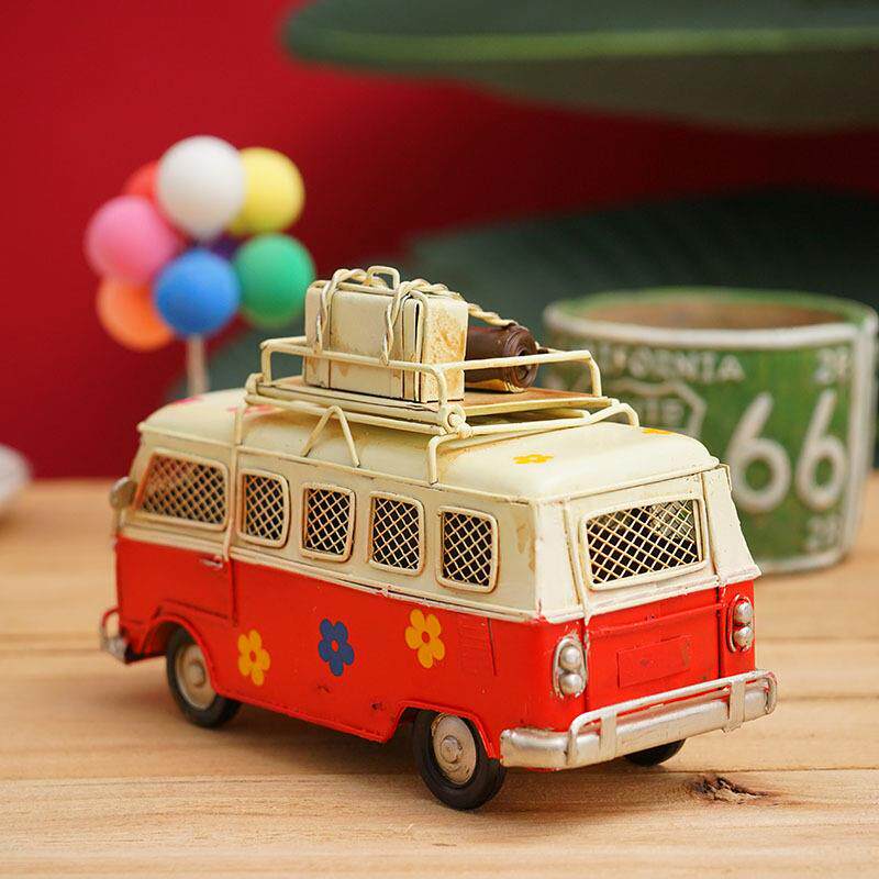 铁艺小车个性复古摆件儿童房模型巴士拍照道具童装店软装饰品桌面