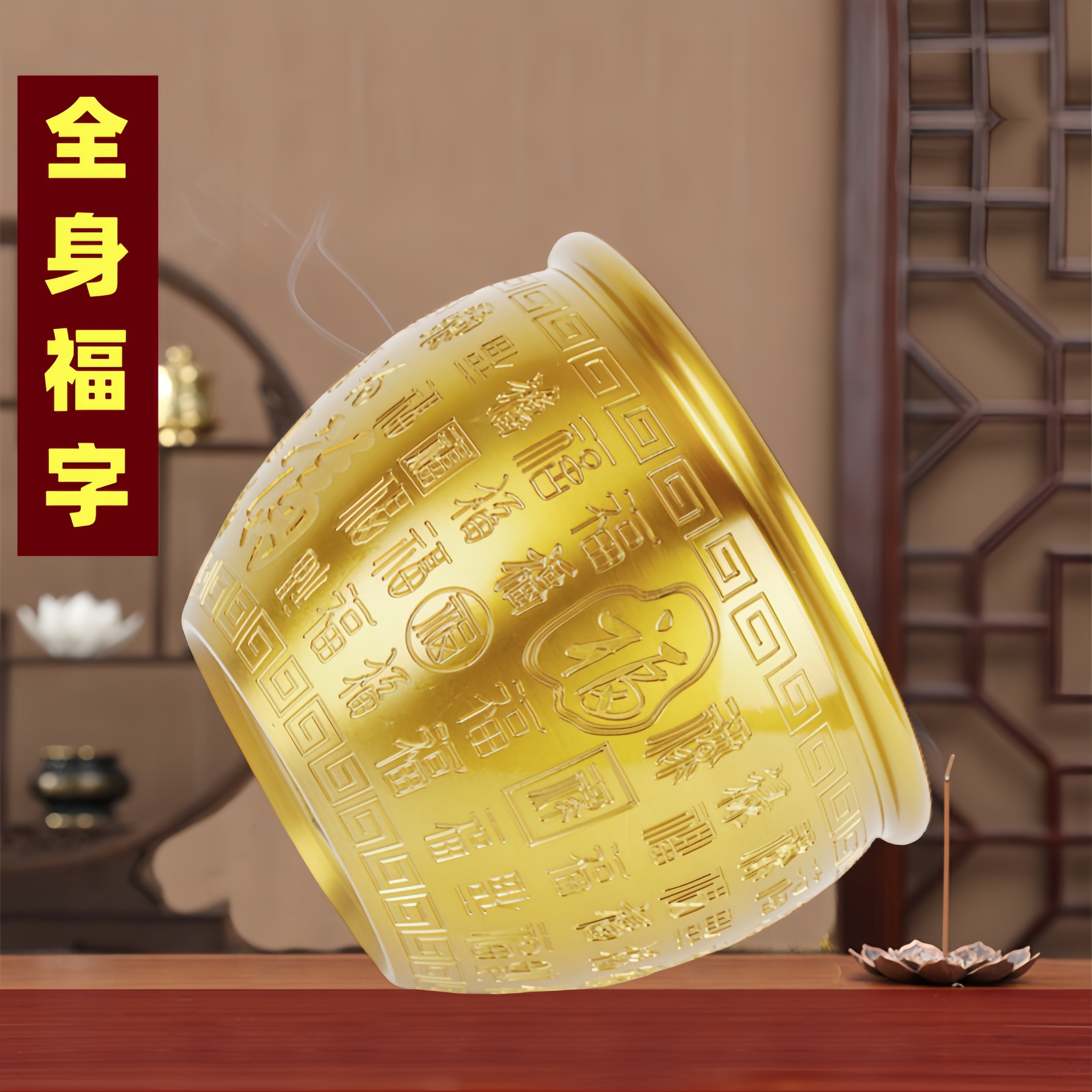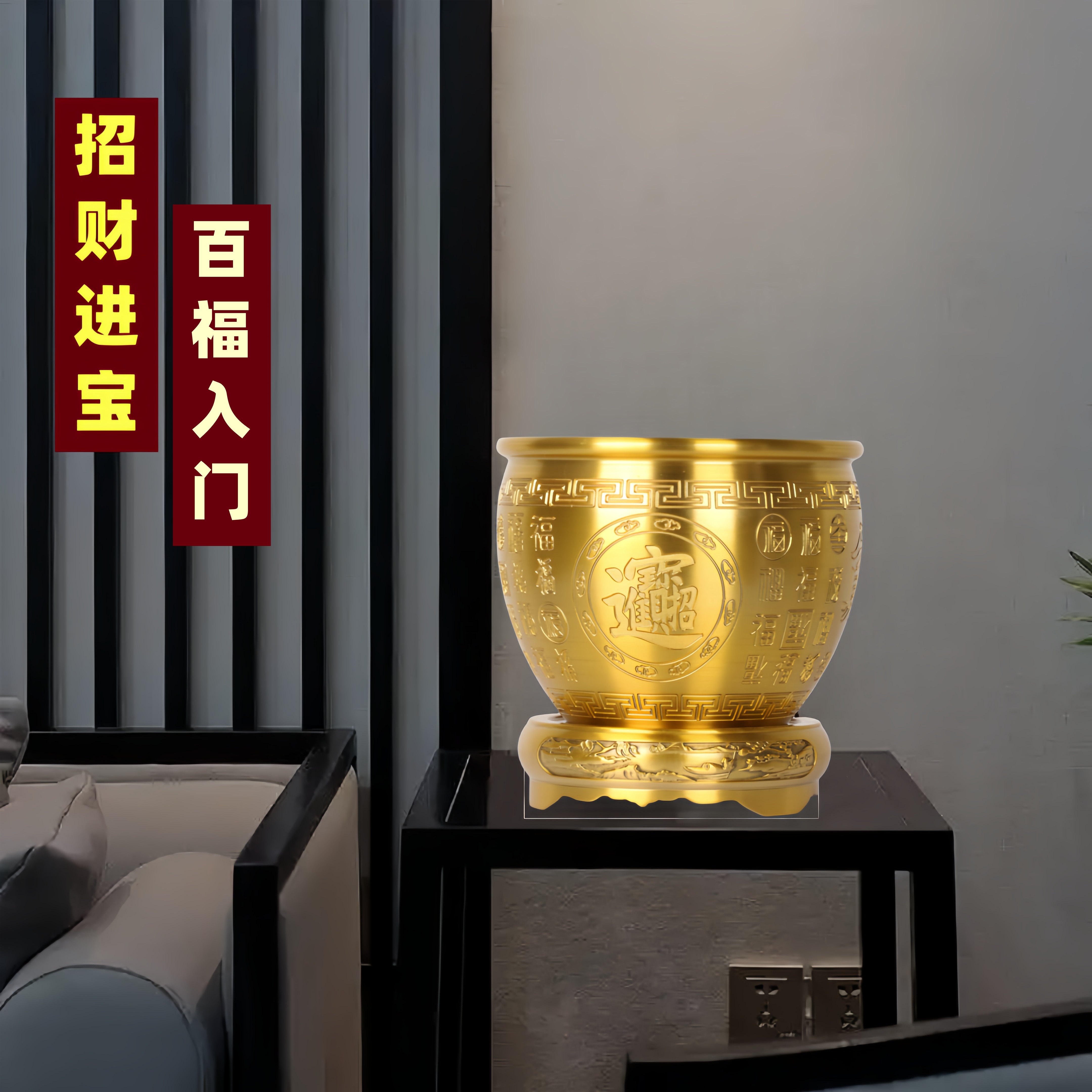 纯全铜百福铜缸招财进宝聚财米缸全铜聚宝盆家居开运纳福客厅摆件