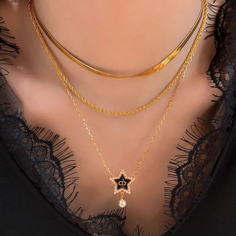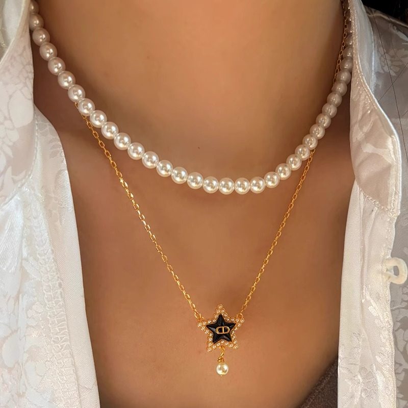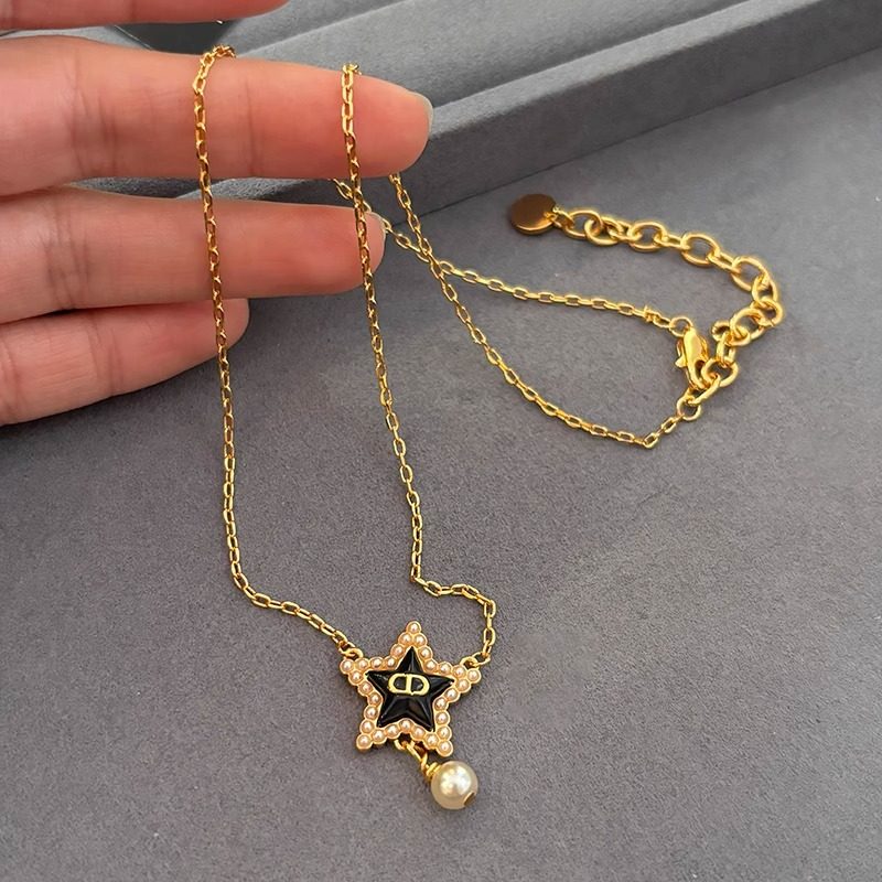 DICD/D家字母黑色五角星珍珠吊坠项链女生轻奢高级感毛衣锁骨颈链