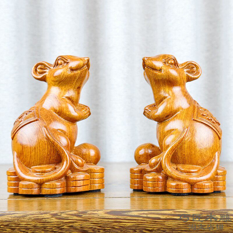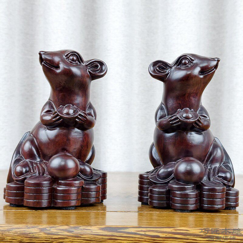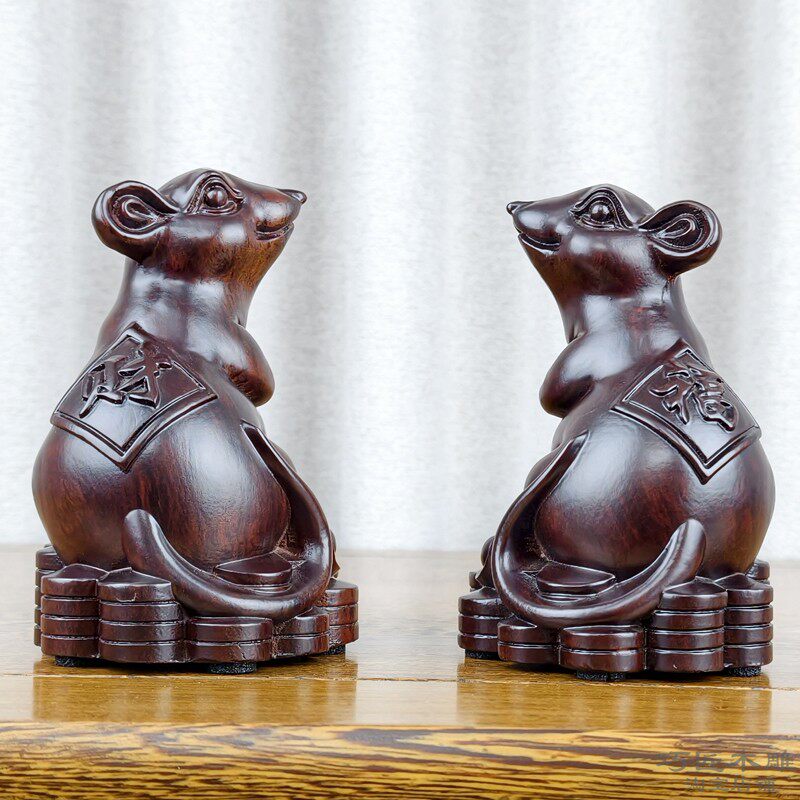黑檀木雕老鼠摆件十二生肖风水木质鼠家居装饰花梨红木工艺品新居