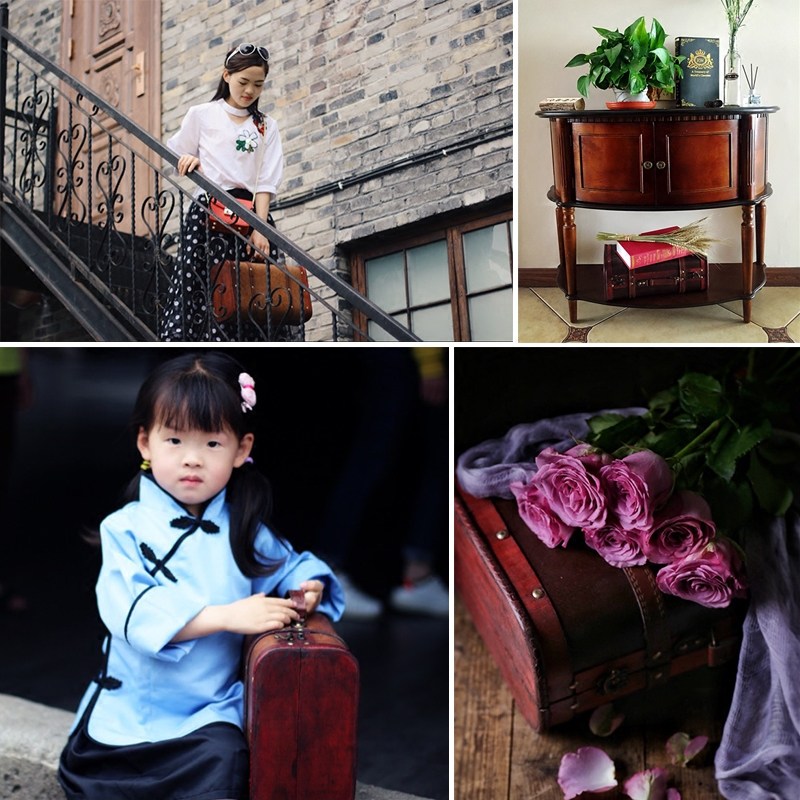 复古老式手提箱摆件欧式皮箱收纳箱木箱子橱窗怀旧拍摄道具装饰品