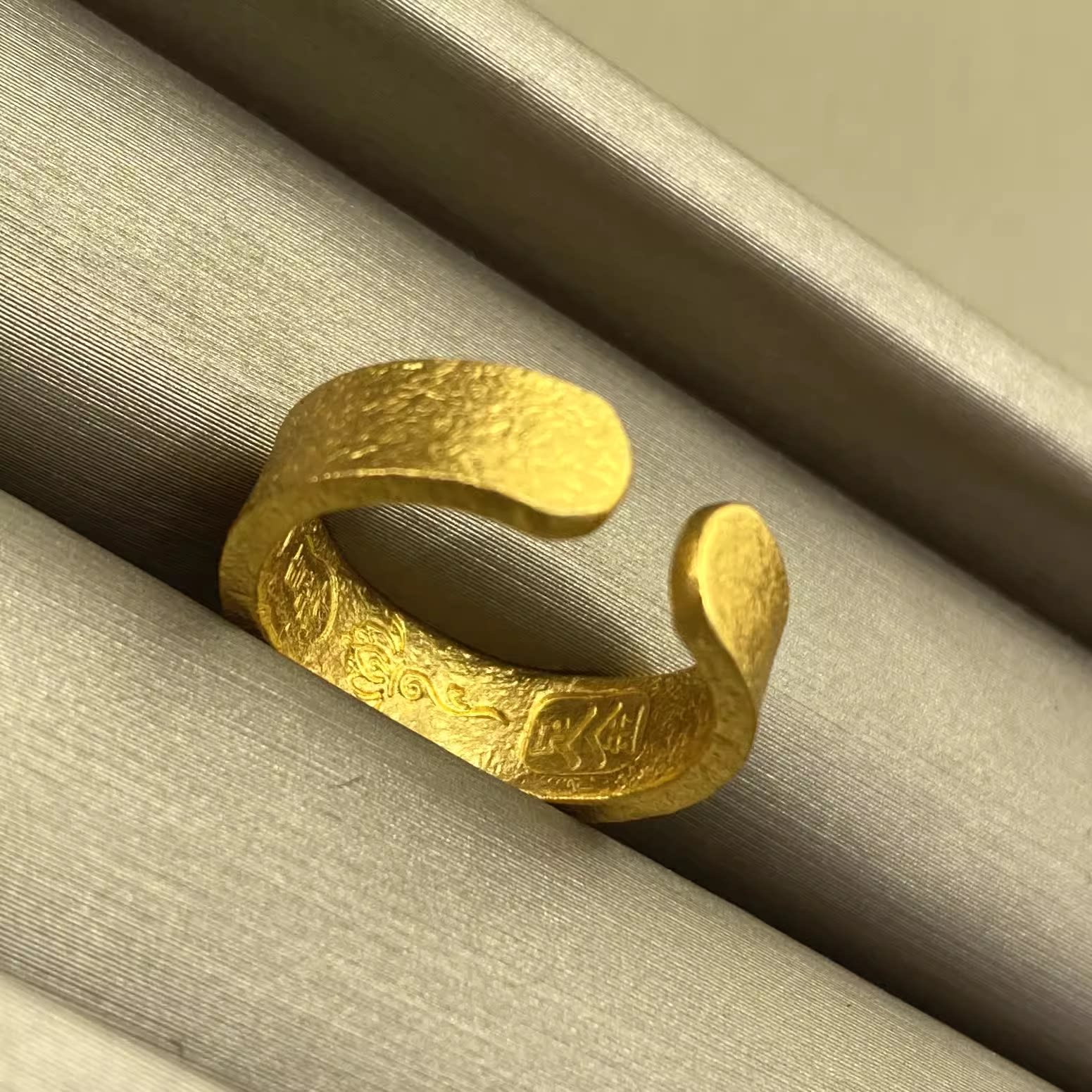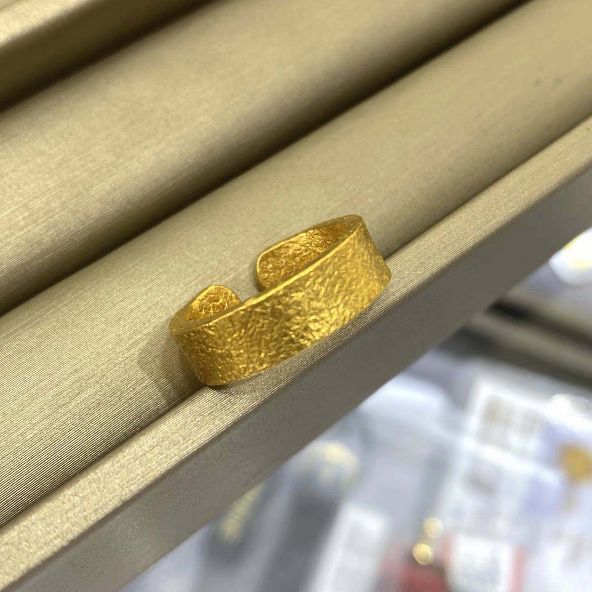 古法纸醉金迷戒指手工錾刻开口锤纹戒子国潮饰品女小众复古高级感