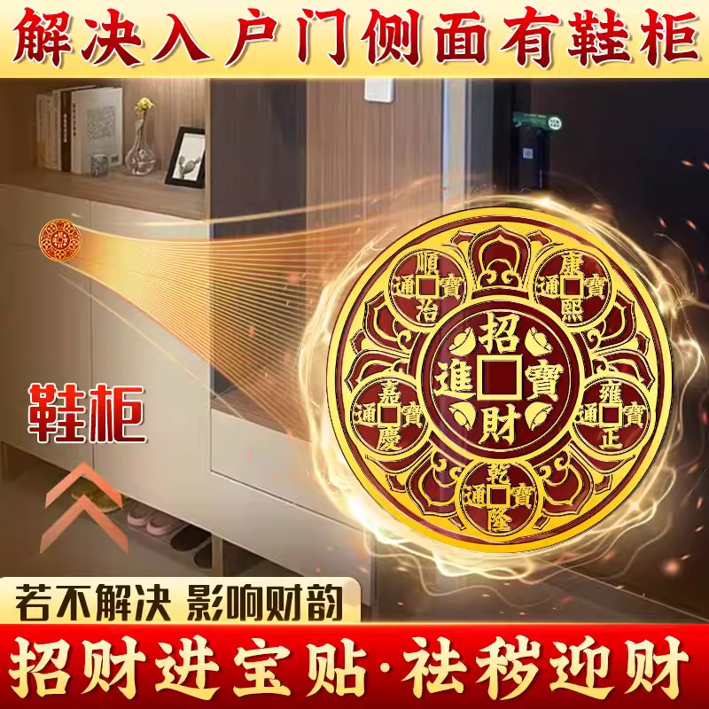 五帝钱金箔贴解决门口有鞋柜入户门对邻居大门对门迎财天官赐福贴