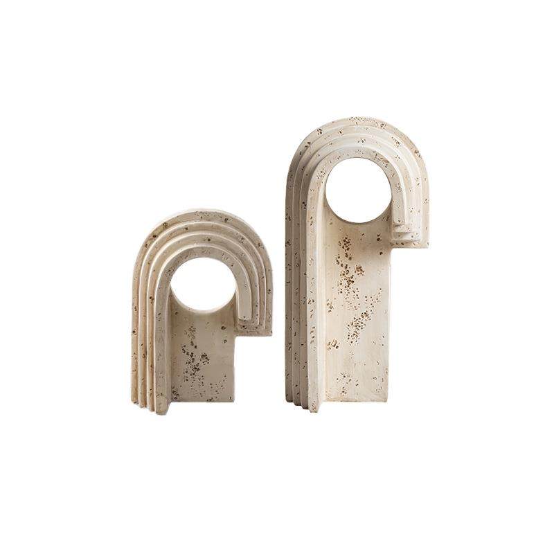 现代侘寂风仿黄洞石拱形玄关几何摆件售楼处书柜设计师软装工艺品