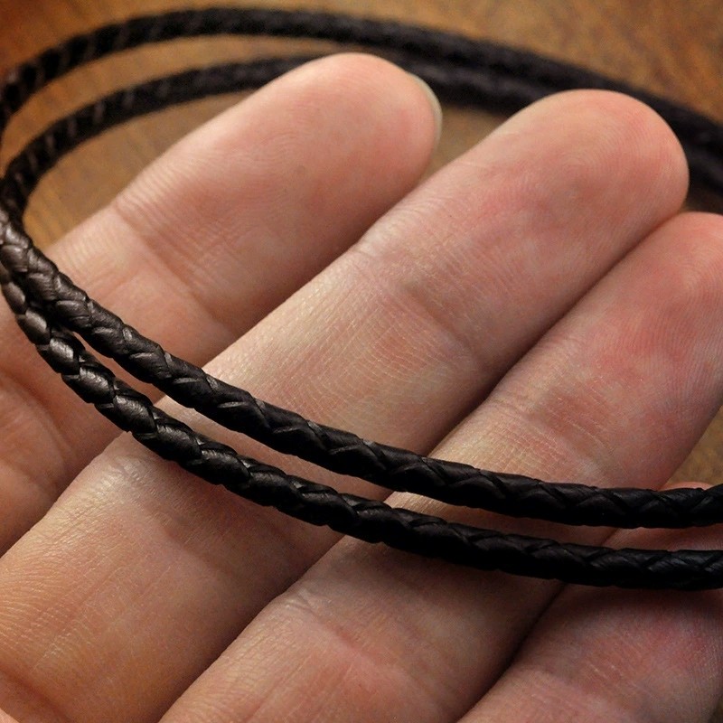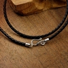 3mm粗真牛皮绳编项链男女短款锁骨链黑色皮绳S925银扣吊坠挂件绳