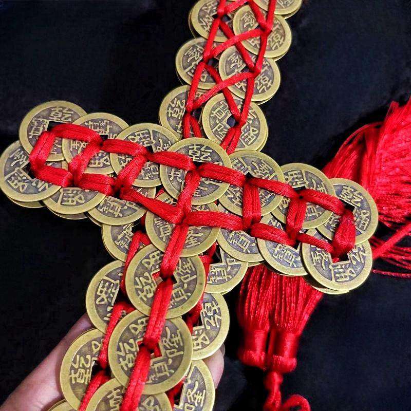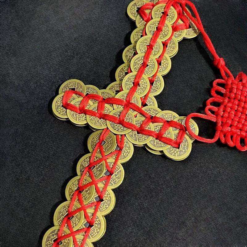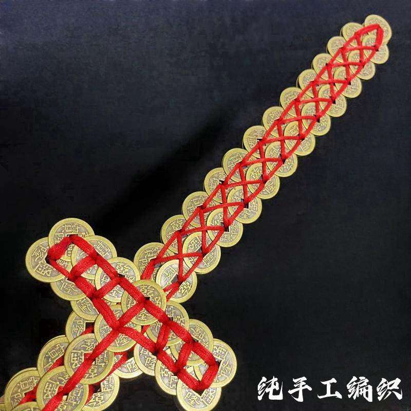 乾隆通宝五帝铜钱剑古钱剑宝剑金钱剑手工编织双排道家法器
