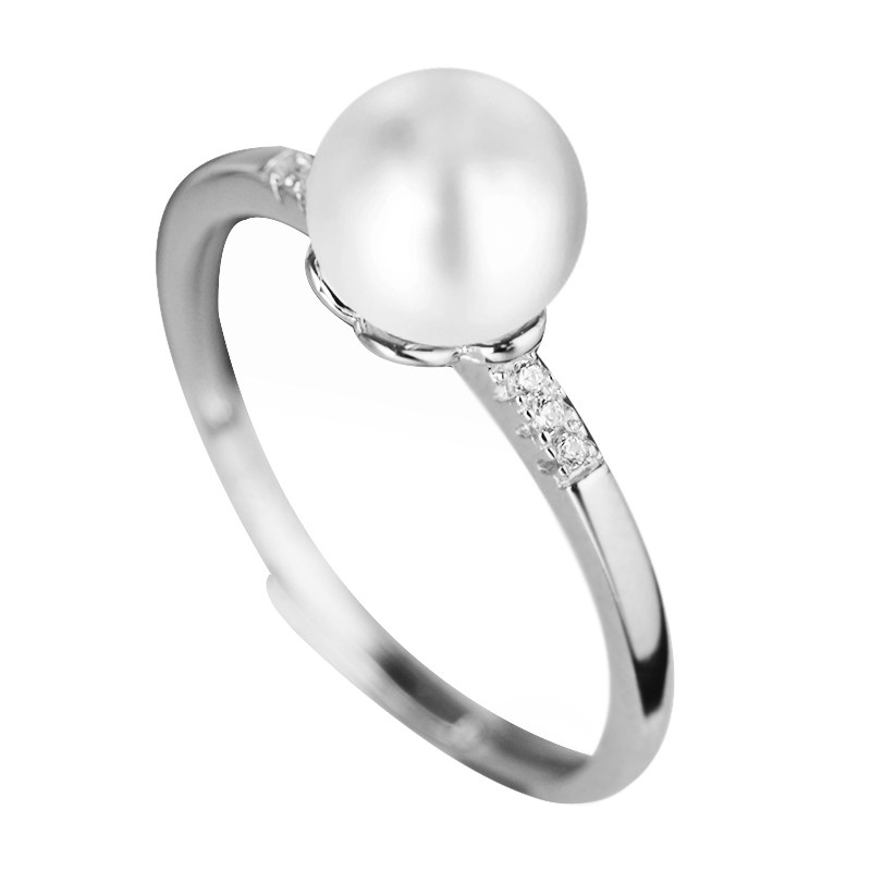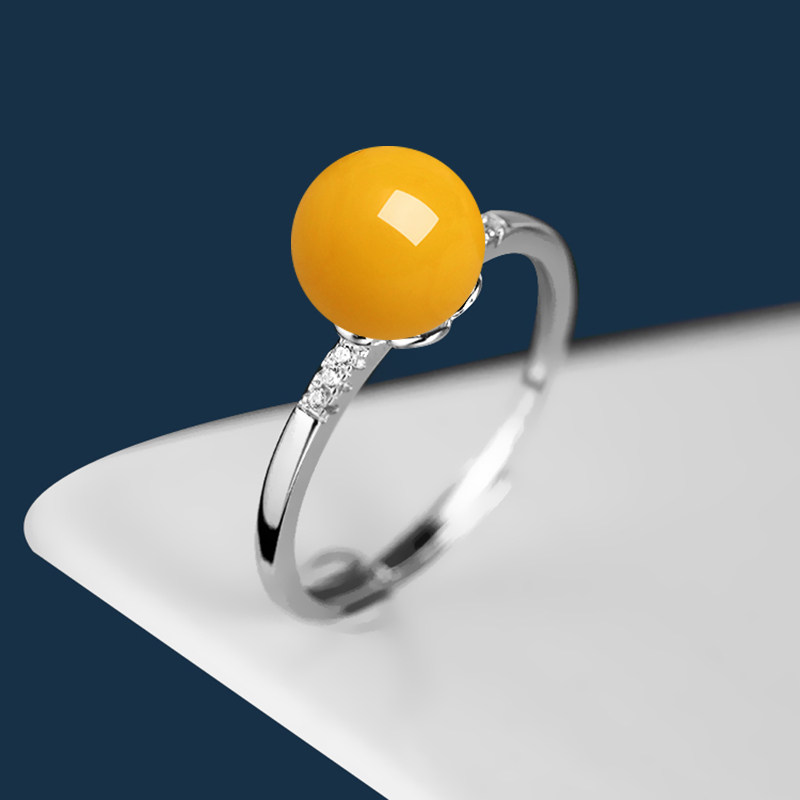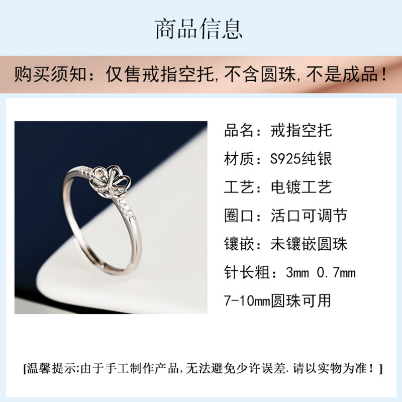 925纯银日韩戒指空托diy女戒指托蜜蜡琥珀绿松石简约珍珠圆珠戒托