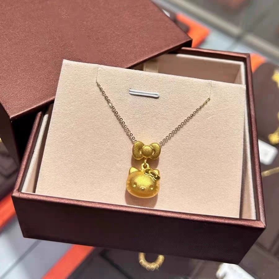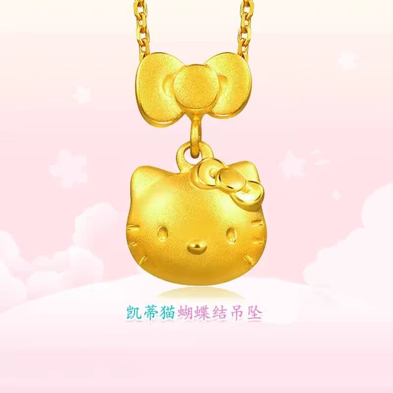 凯蒂猫吊坠女蝴蝶结KT猫金包银吊坠女卡通hello kitty项链挂坠