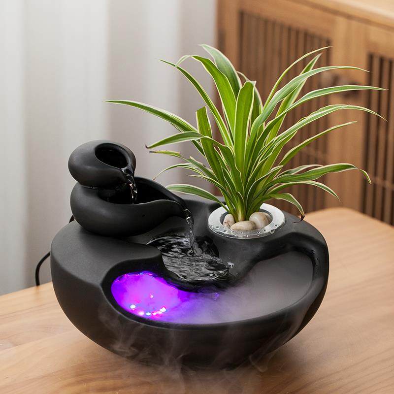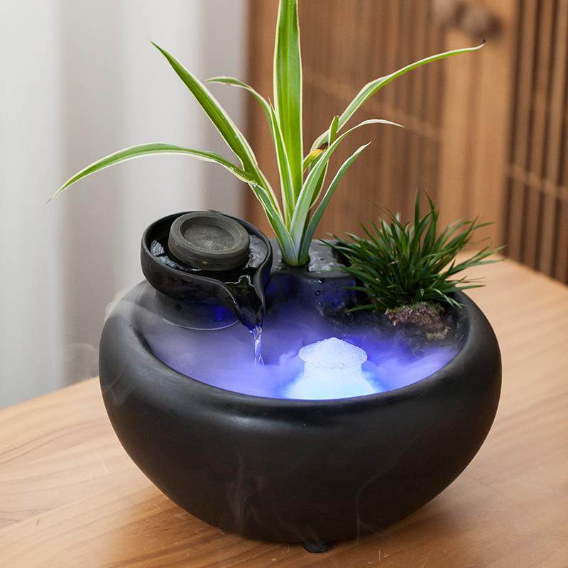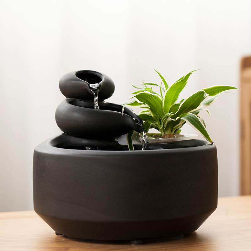 陶瓷流水摆件办公室桌面喷泉客厅水景招财风水鱼缸禅意乔迁新居