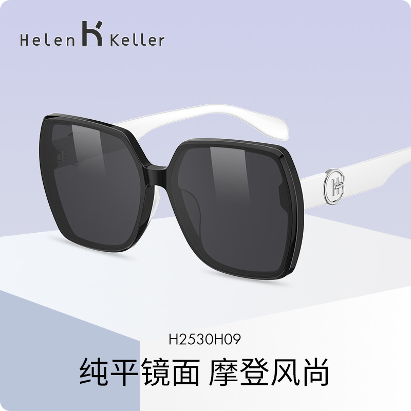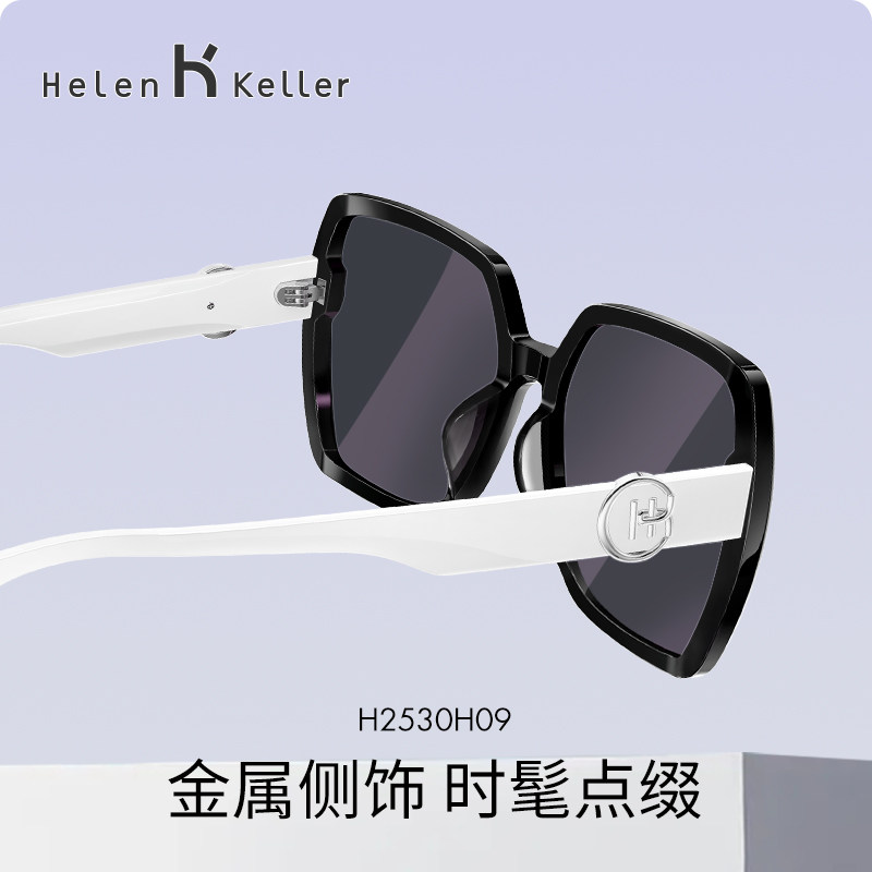 海伦凯勒新款太阳眼镜女型趣黑白镜修颜潮搭防紫外线墨镜H2530