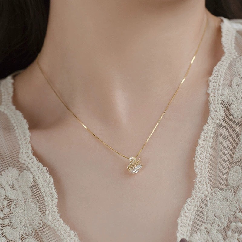 S925纯银项链女百搭小天鹅镶钻吊坠轻奢小众设计高级感锁骨链
