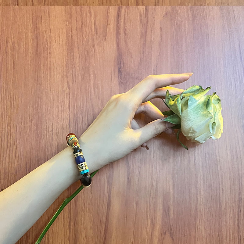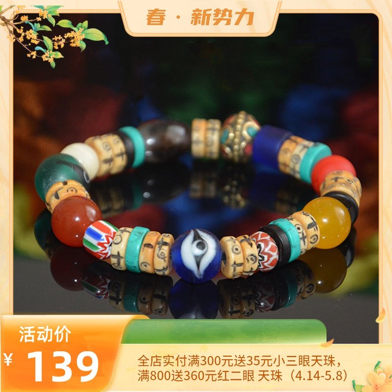 西藏天眼手串牛骨雪巴琉璃多宝手链浪漫宫廷风情侣礼物藏式风绳子