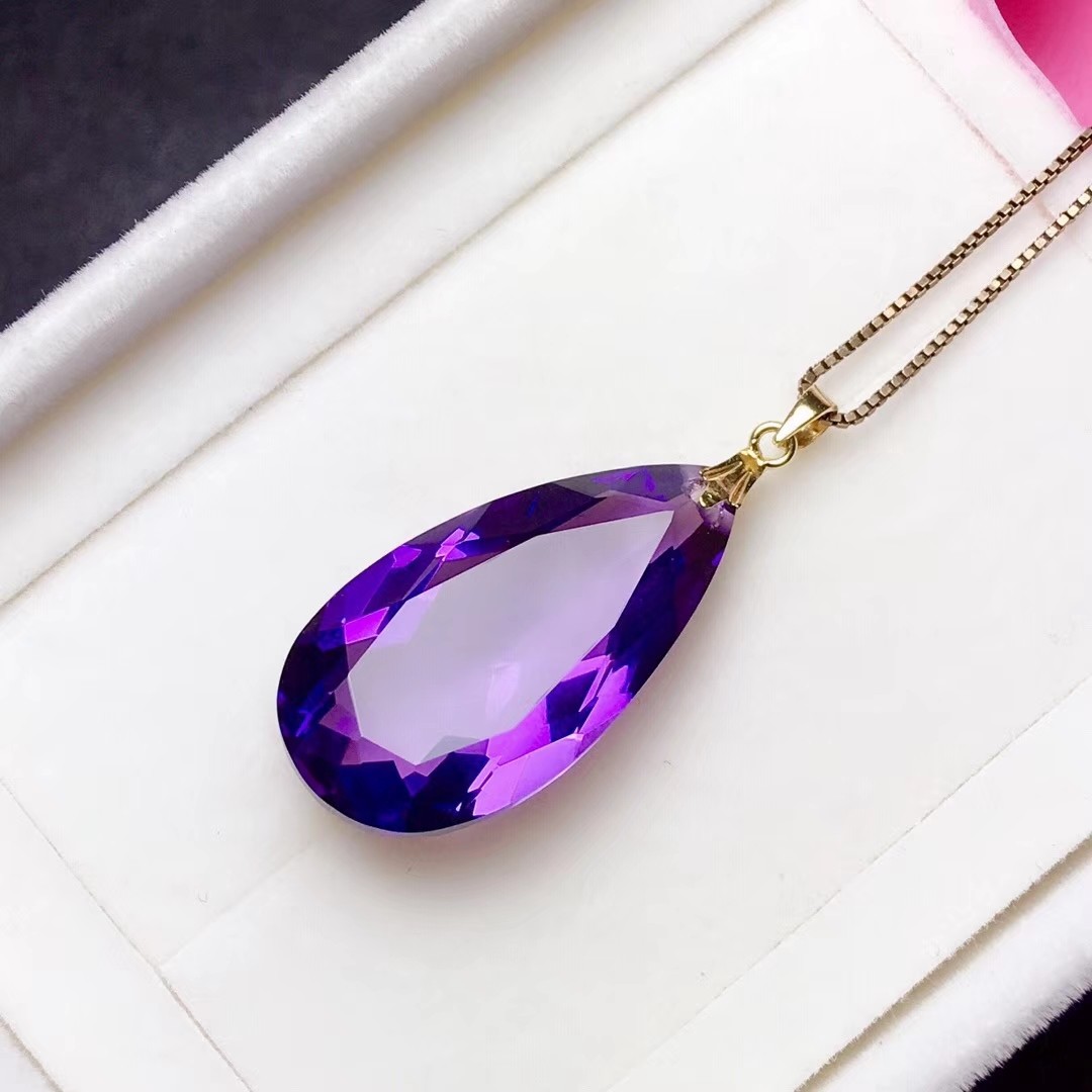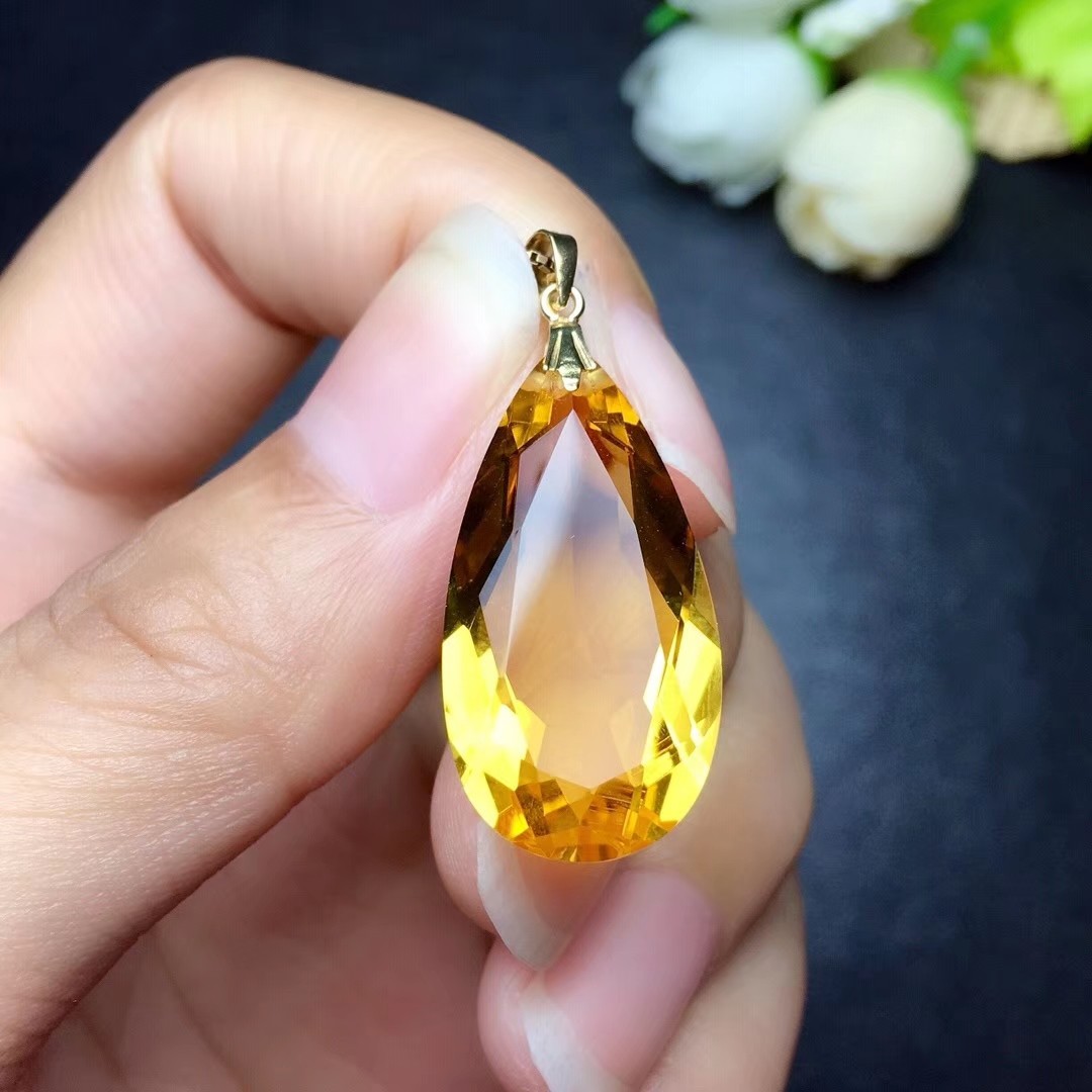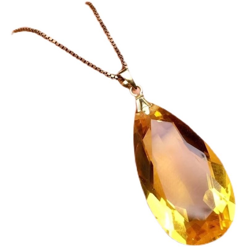 水晶项坠18K金黄水晶水滴吊坠紫水晶大颗粒锁骨项链坠招米礼物