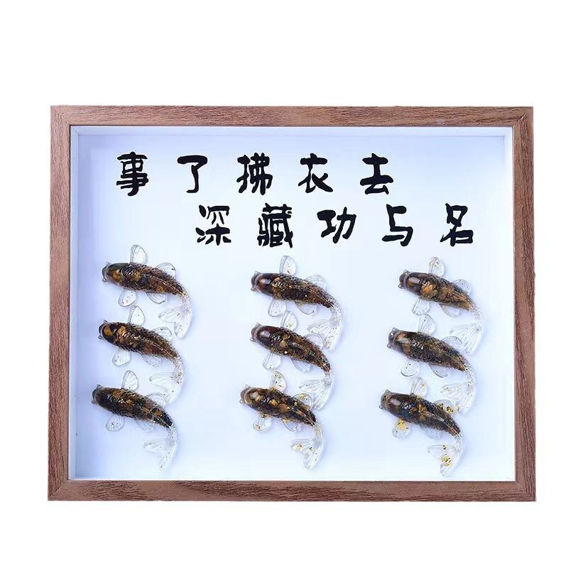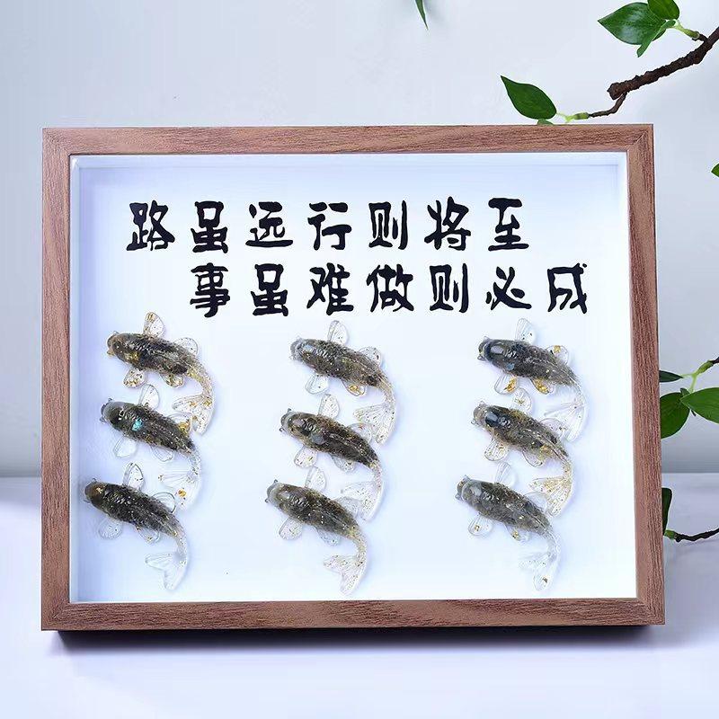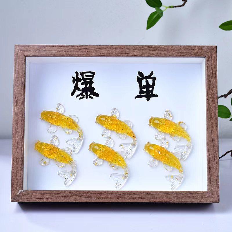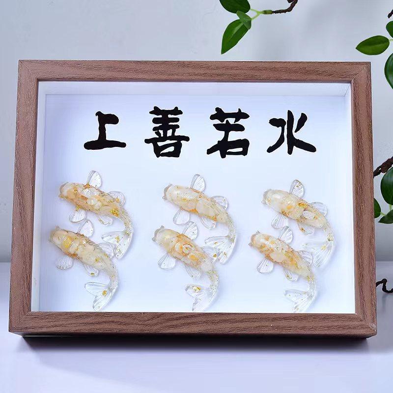 天然水晶碎石滴胶小鱼相框相册摆件装饰办公桌书房面饰品礼物摆件