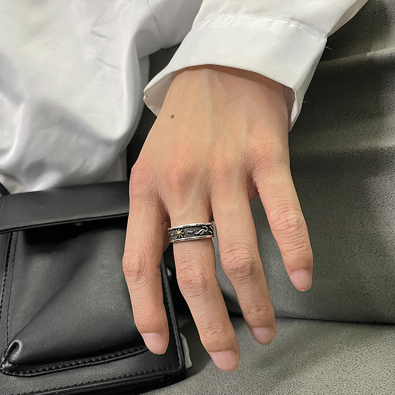 MASKEDFOXES太阳图腾开口戒指男个性镀S925银复古指环潮牌礼物