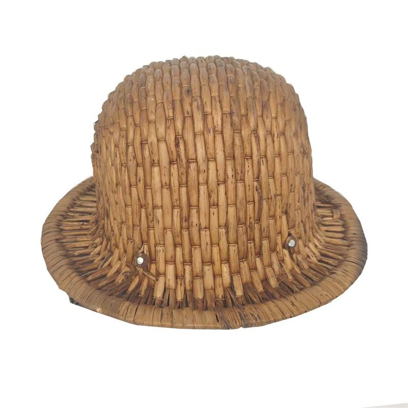 老物件旧斗笠50年代矿工工人安全帽竹编帽矿灯复古装饰道具摆件