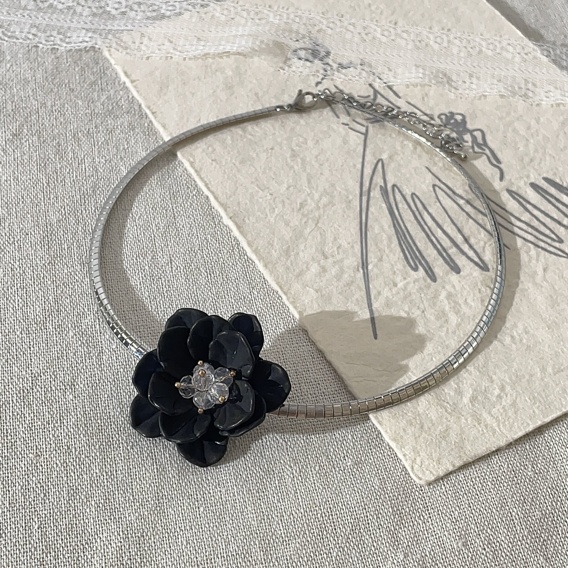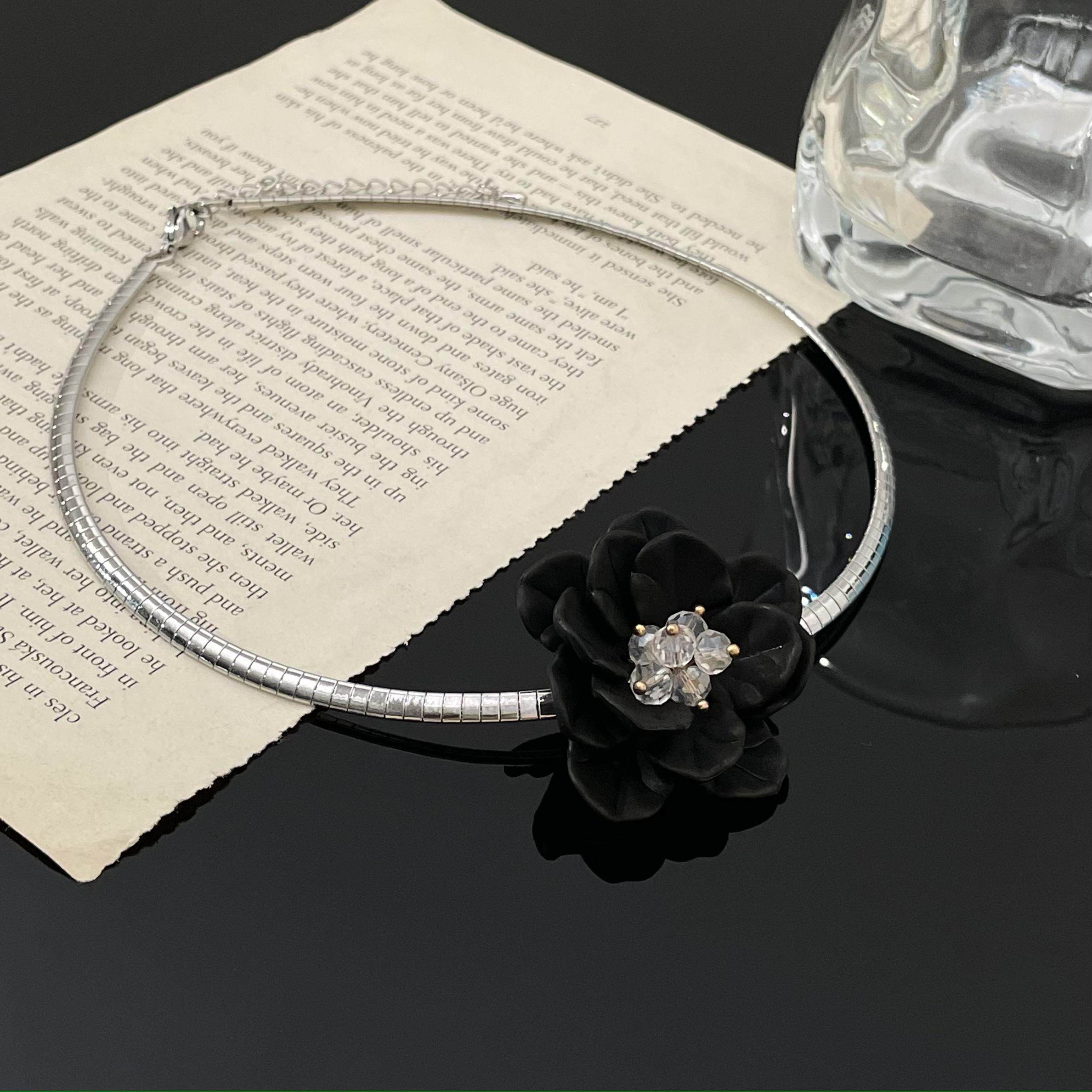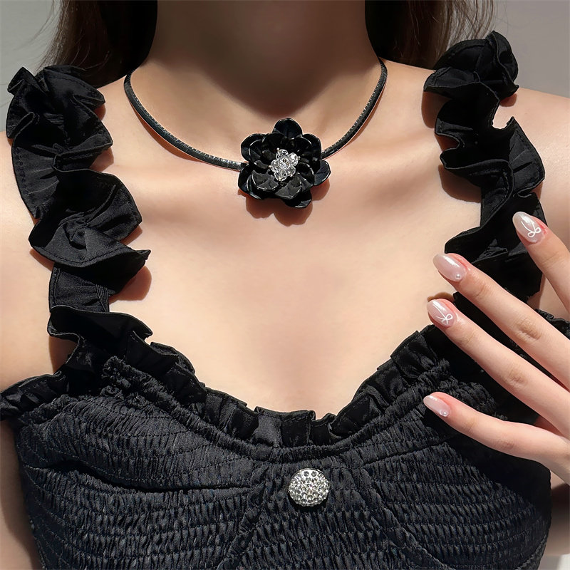 黑姑姑配饰黑色立体花朵项链女锁骨链颈链choker轻奢小众设计高级