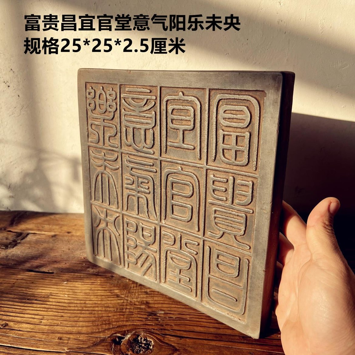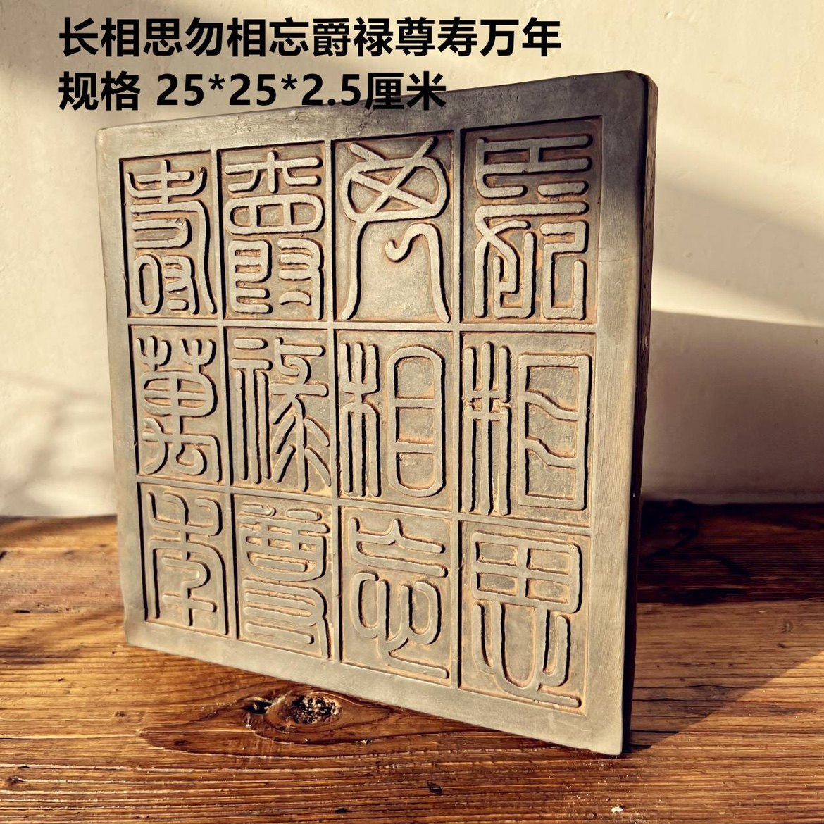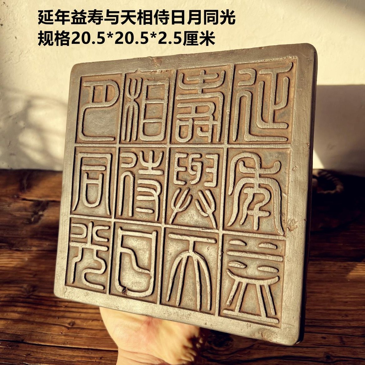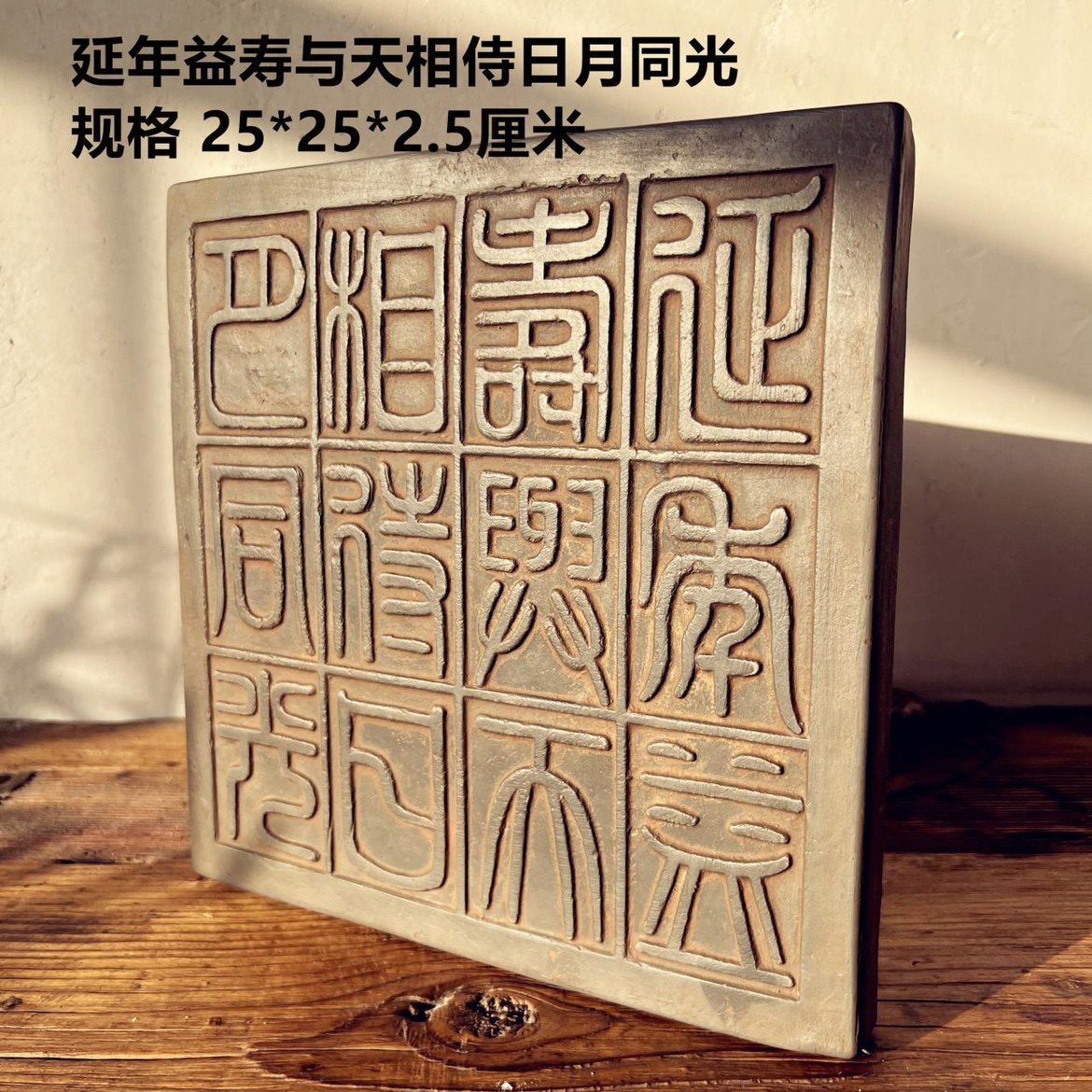 中式复古汉砖秦砖雕刻十二字吉语延年益寿金石篆刻研学传拓片制作