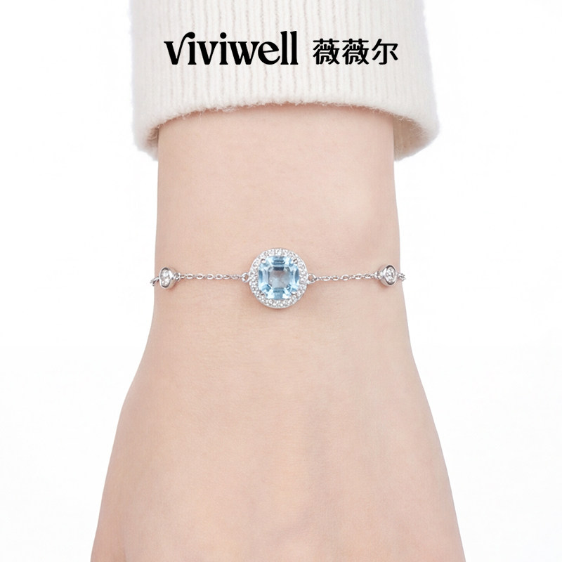 VIVIWELL海蓝玫瑰 轻奢蓝色玫瑰纹理手链女时尚百搭手饰生日礼物