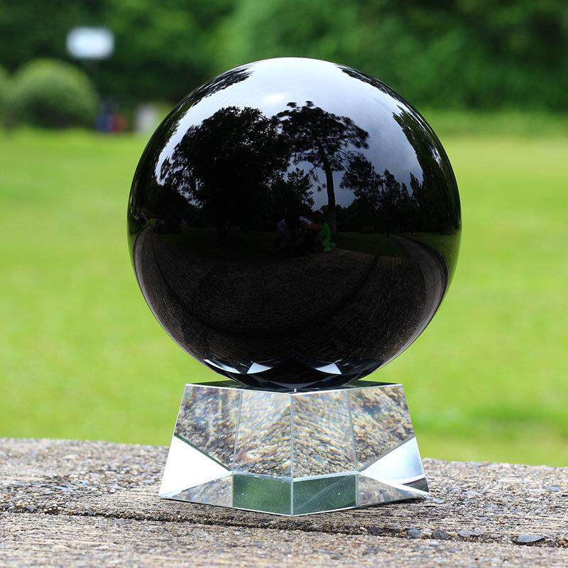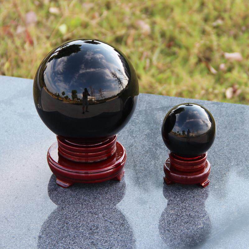 黑色水晶球摆件人造黑曜石客厅玄关屏风风水球办公室办公桌摆设