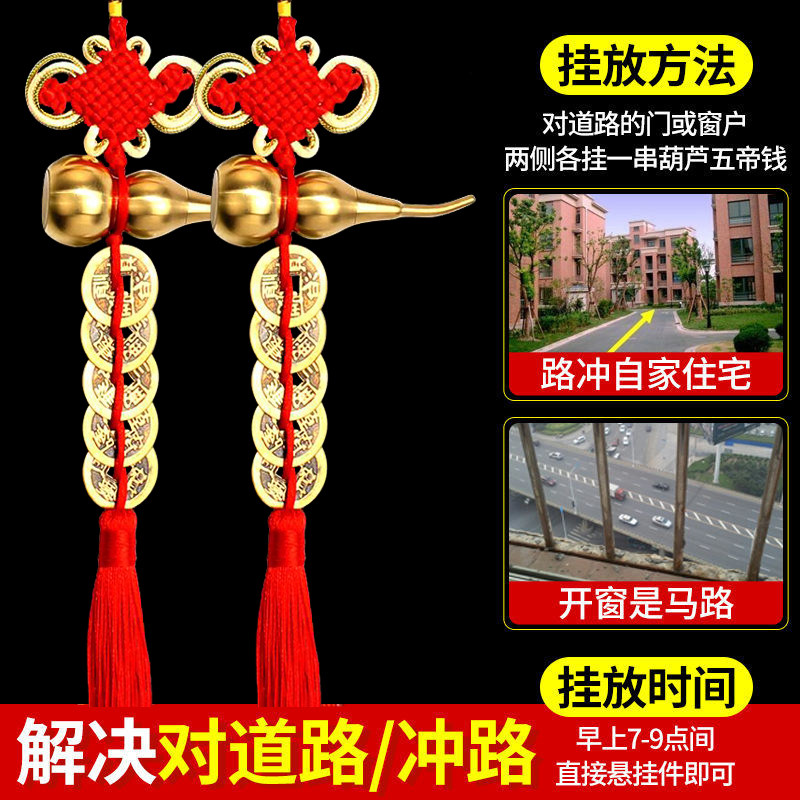 大门对路化解阳台窗户直冲马路壁刀天斩电线杆五帝钱纯铜葫芦挂件