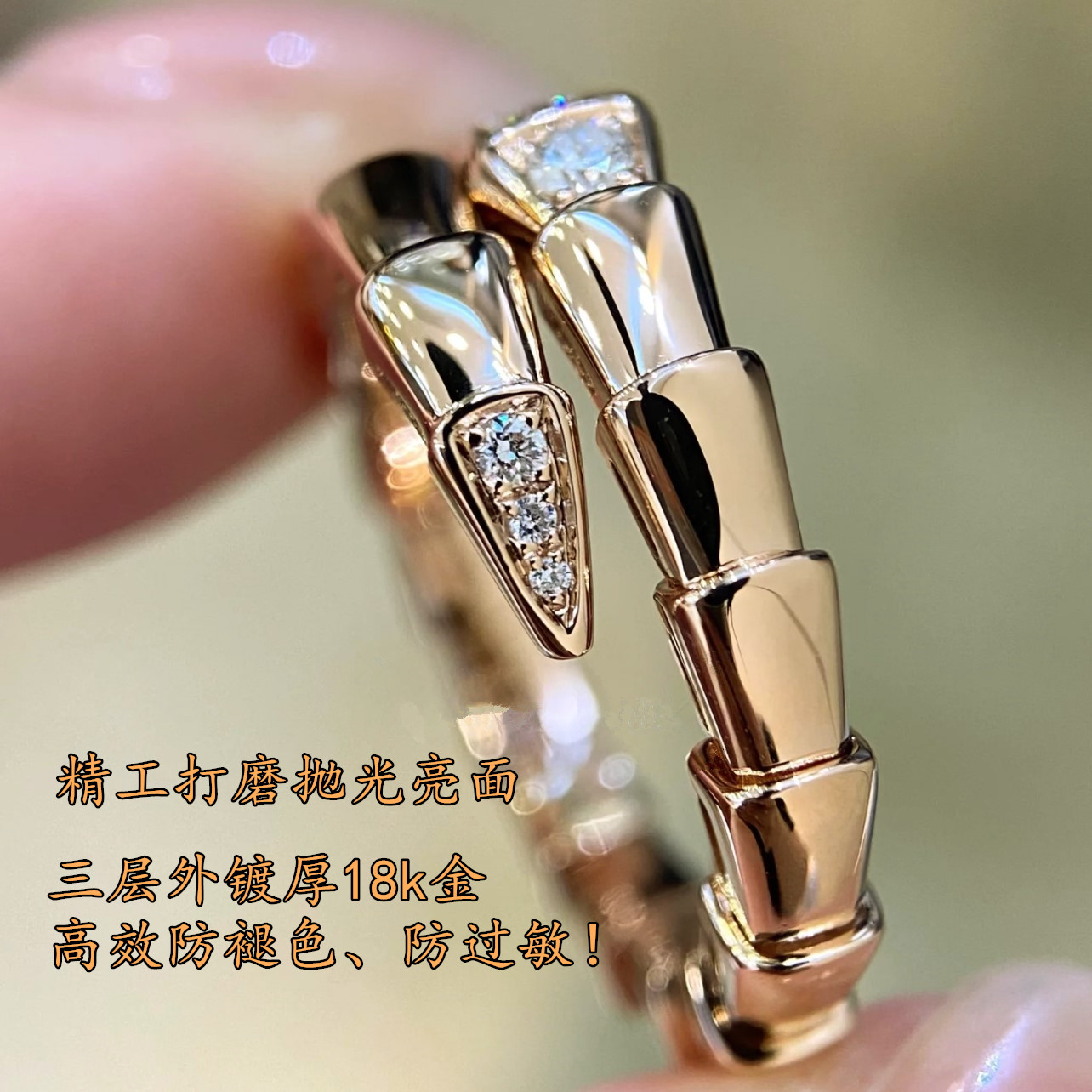 高版本蛇年新款蛇形戒指女轻奢镀18K玫瑰金小众设计高级感食指环